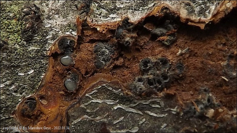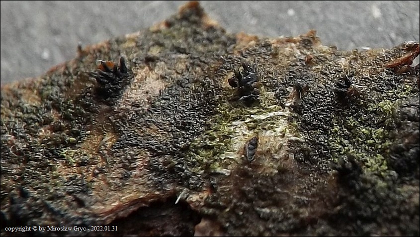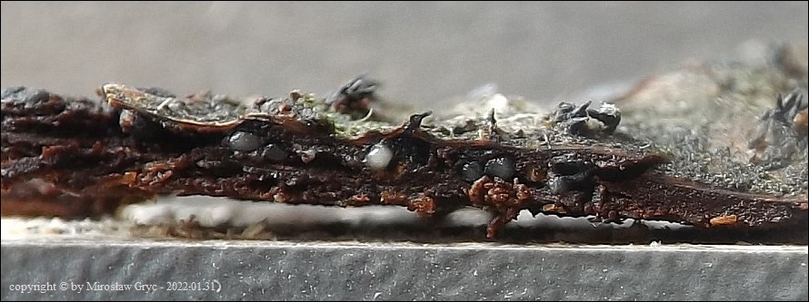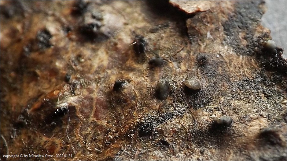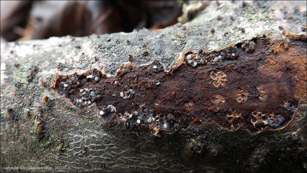 Substrat: Owocniki na leżącej na ziemi gałęzi olszy (Alnus sp.).