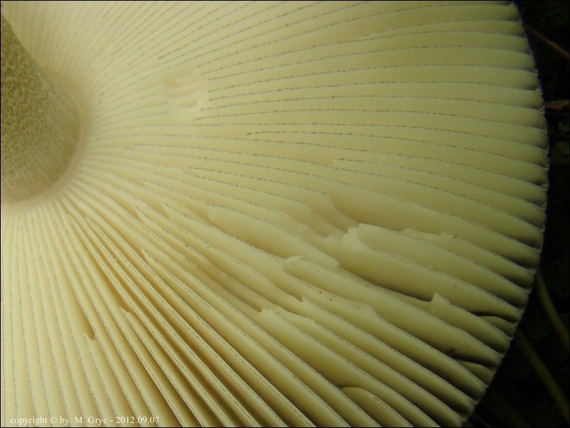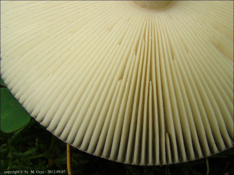 Miąższ – kruchy, dość cienki, białawy, o słabym i nieokreślonym smaku i zapachu.