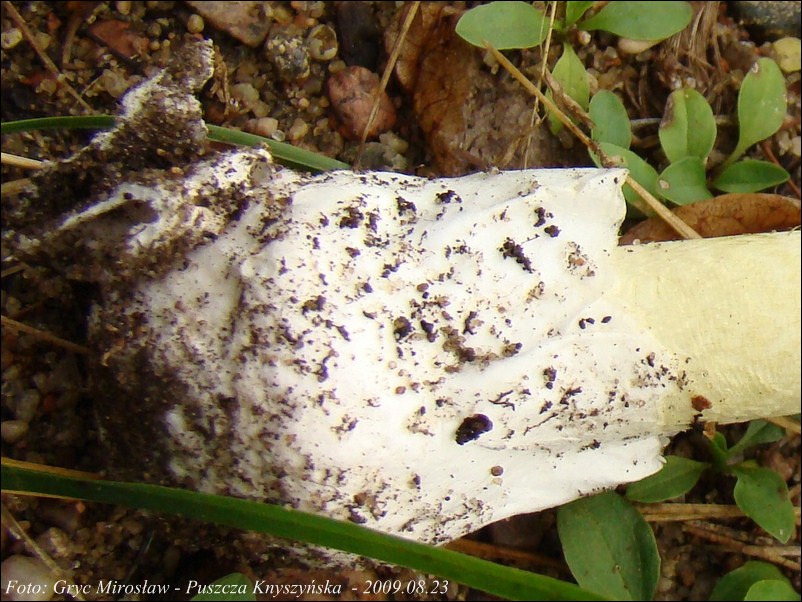 Trzon: zazwyczaj o zabarwieniu białym, może jednak być również w odcieniu lekko zielonkawym, zakończony wyraźną bulwą, otoczoną dużą, białą pochwą.