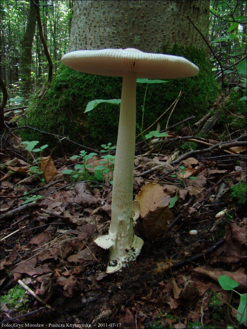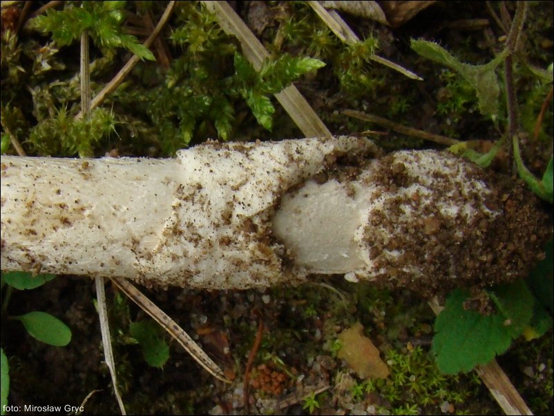 Trzon: jednakowo gruby na całej długości, ewentualnie lekko zwężający sie ku górze, wysmukły; powierzchnia na całej powierzchni pokryta białymi kłaczkami; podstawa zazwyczaj bardzo mało zgrubiała, z pochwą: dużą, wolną, błoniastą, białą, z wiekiem brązowiejącą.