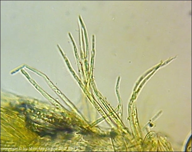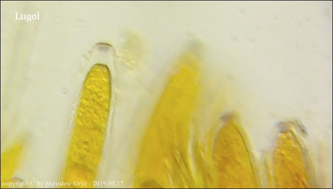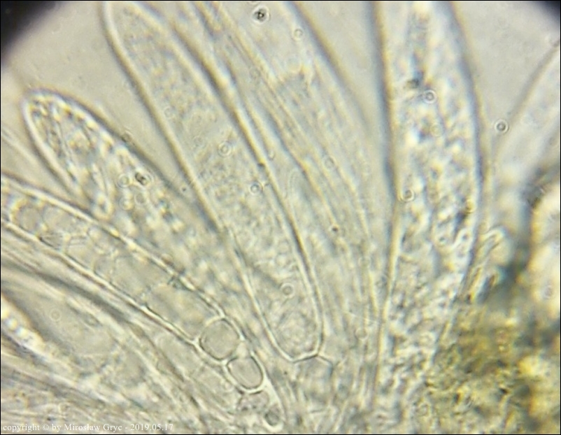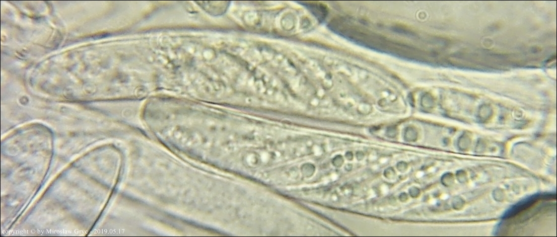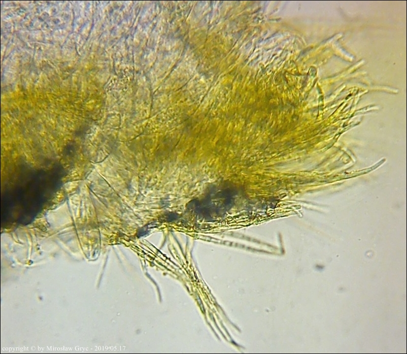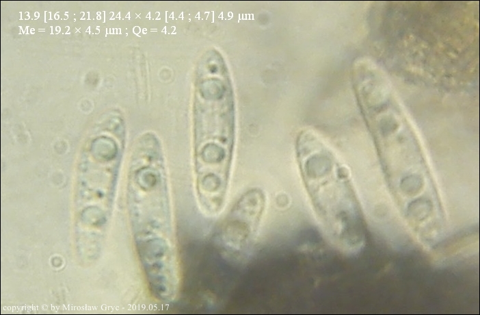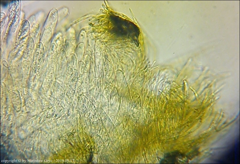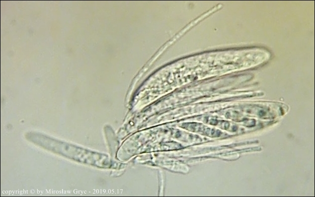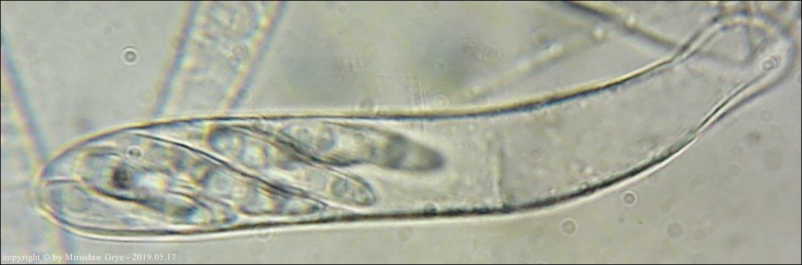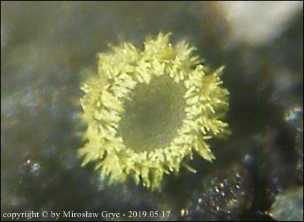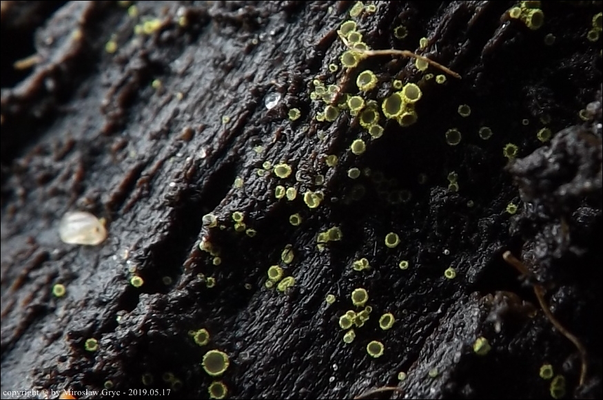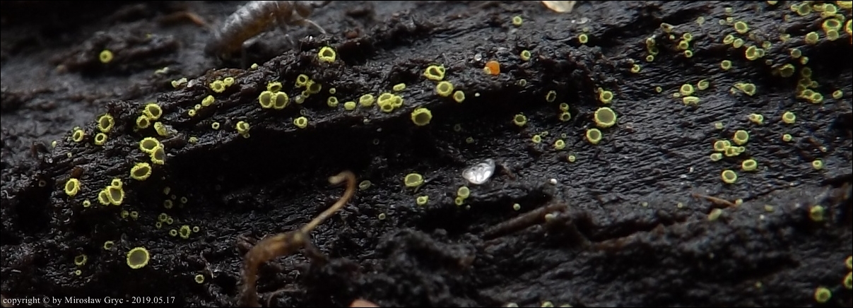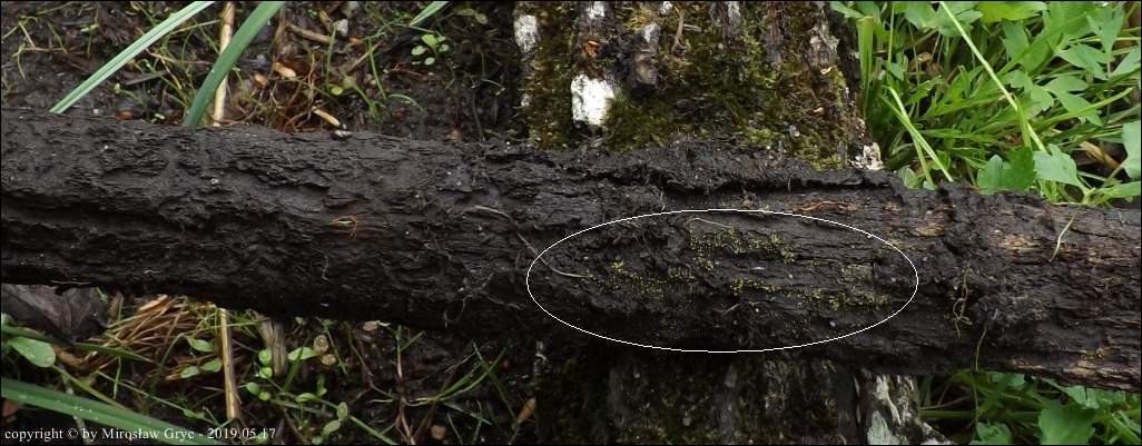 Substrat: Owocniki na dolnej stronie drewna leżącego na błotnistej ziemi.