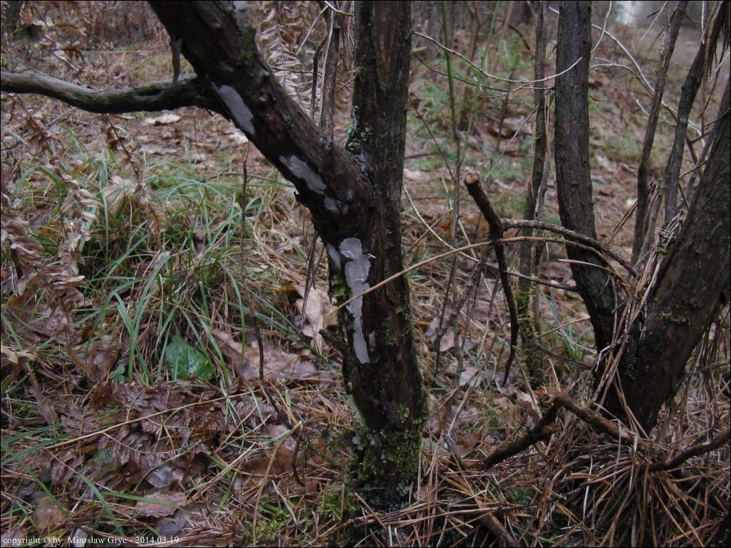 Substrat: Owocnik na dolnej stronie złamanego jałowca.