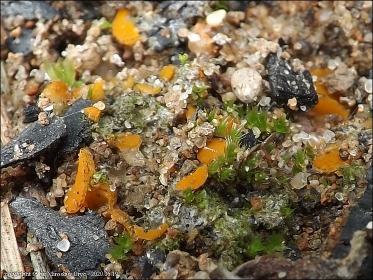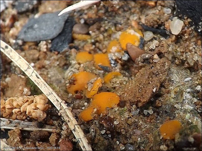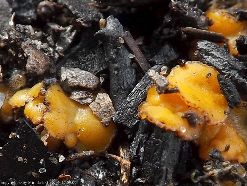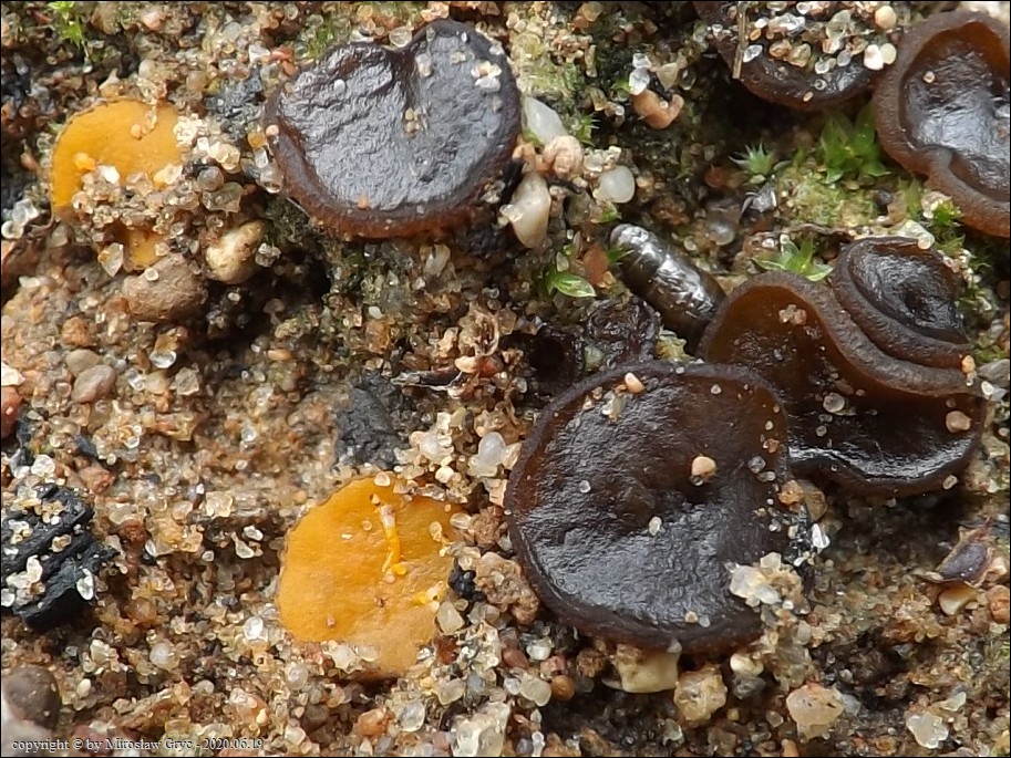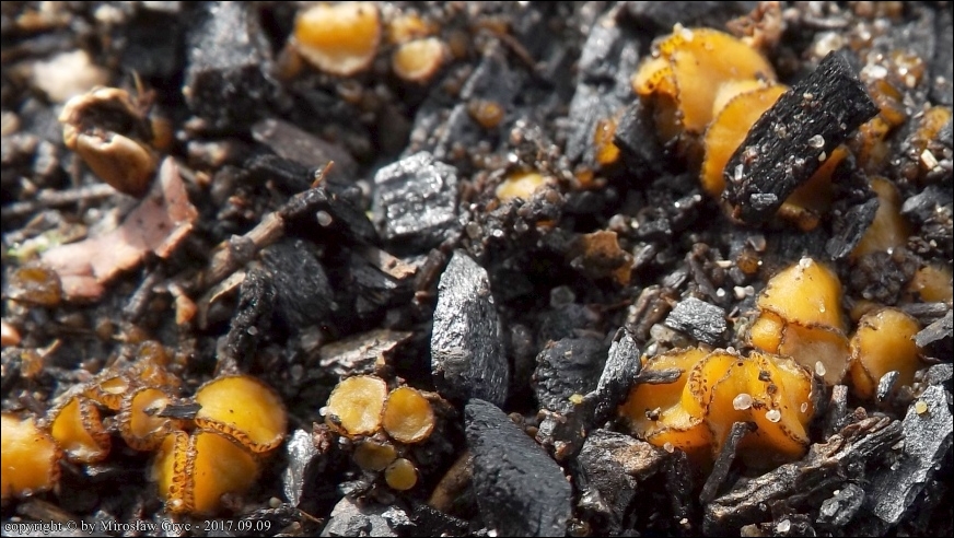Substrat: Owocniki na węglu, w miejscu dawniej palonego ogniska, wyrastające razem z Ascobolus carbonarius oraz Peziza atrovinosa .