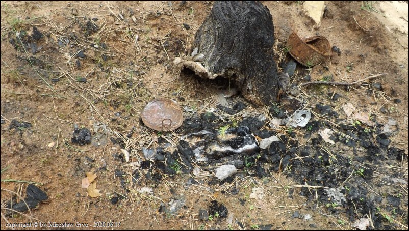 Substrat: Owocniki na węglu, w miejscu dawniej palonego ogniska.