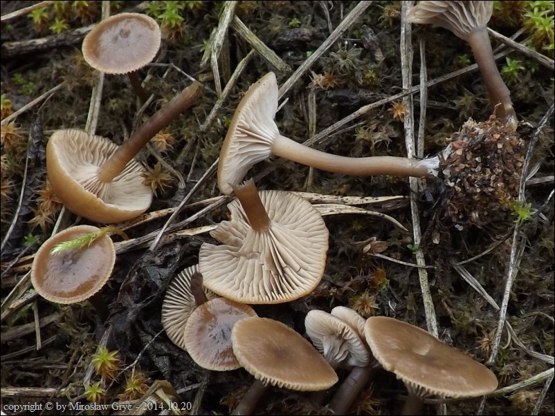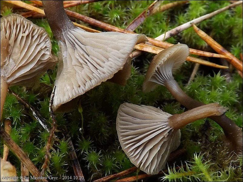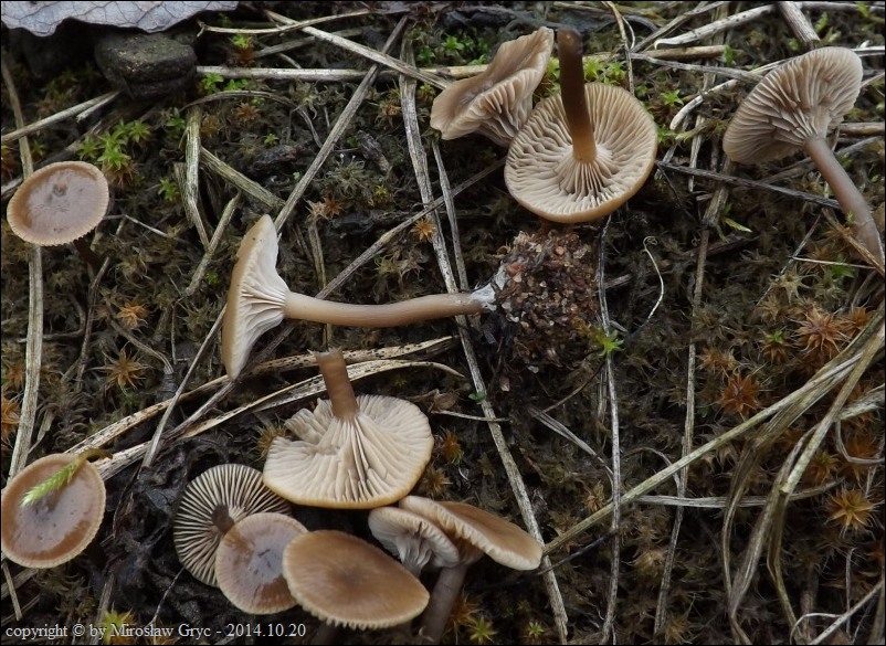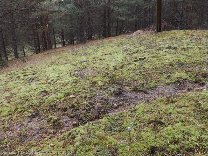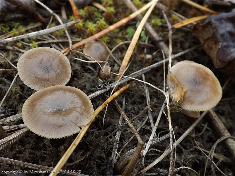 | 2012.11.03 | Około 1,5 km na wschód od Ogrodniczek | Stare wyrobisko pożwirowe, dwa owocniki na żwirowym podłożu porośnietym mchami. Stanowisko zgłoszone do Krajowego Rejestru Grzybów Rzadkich i Chronionych - ID: 230081.