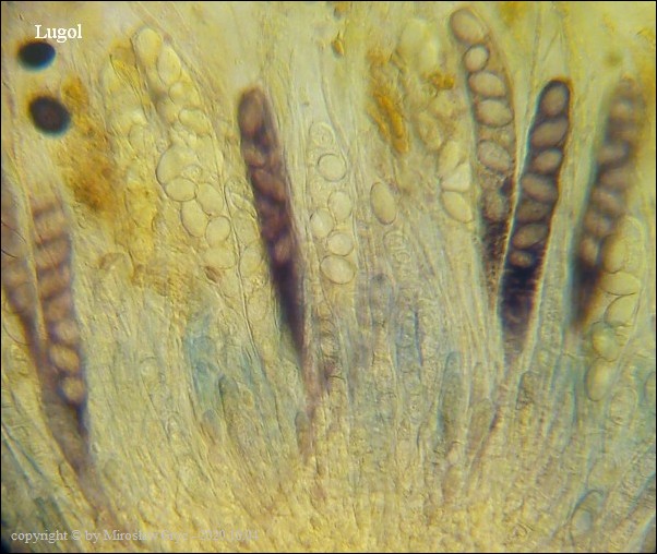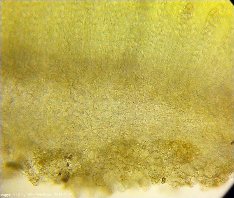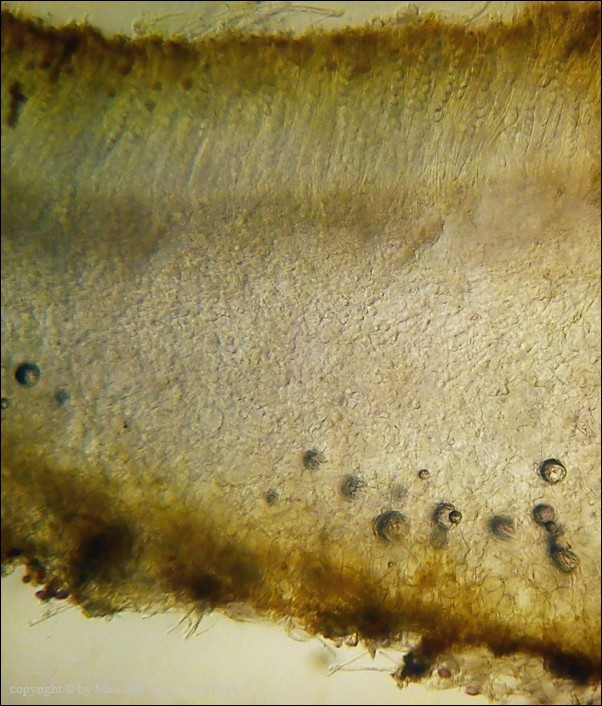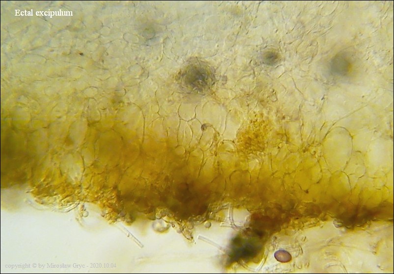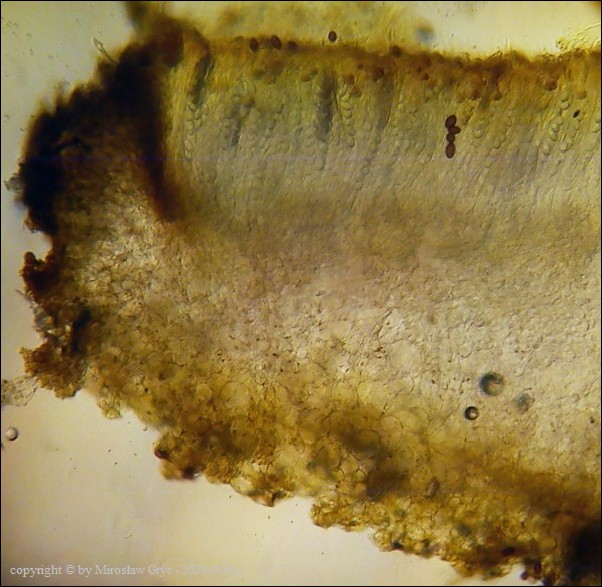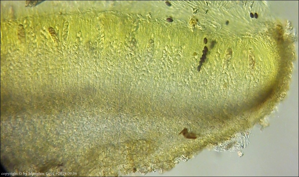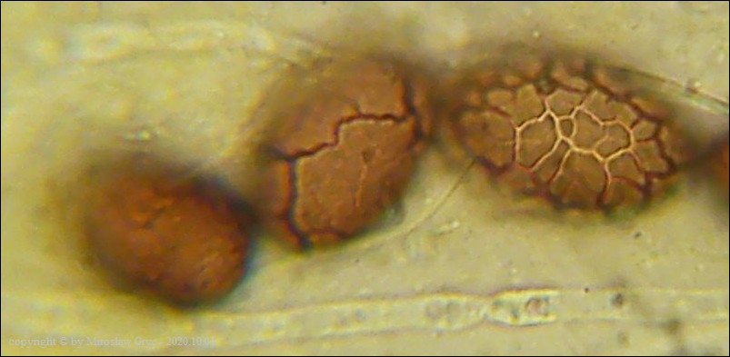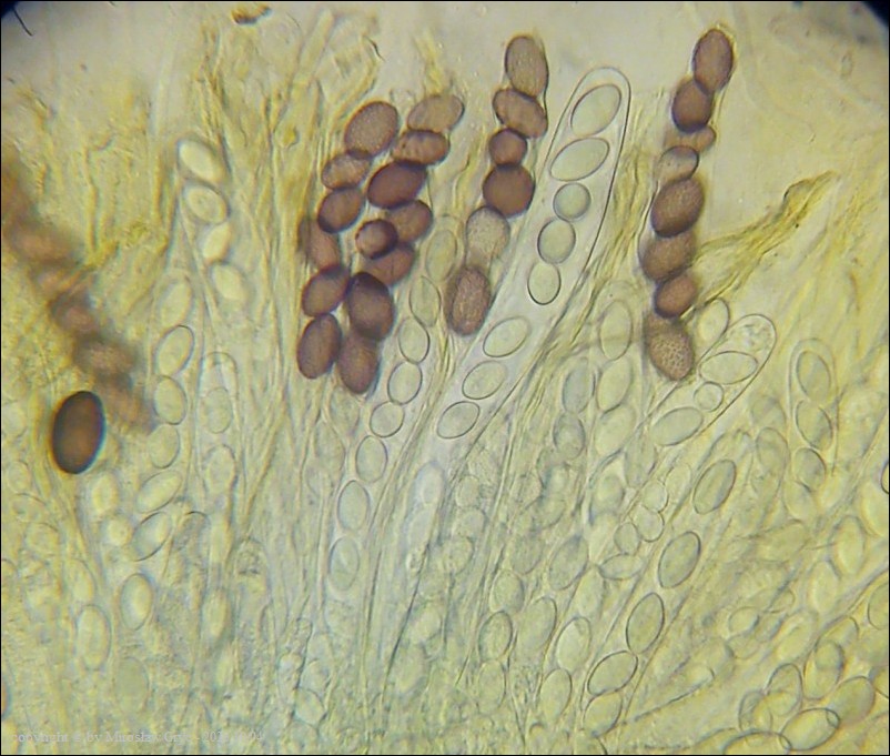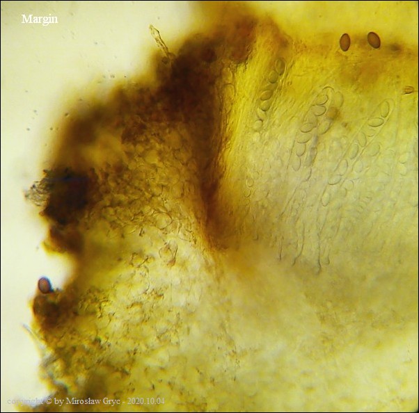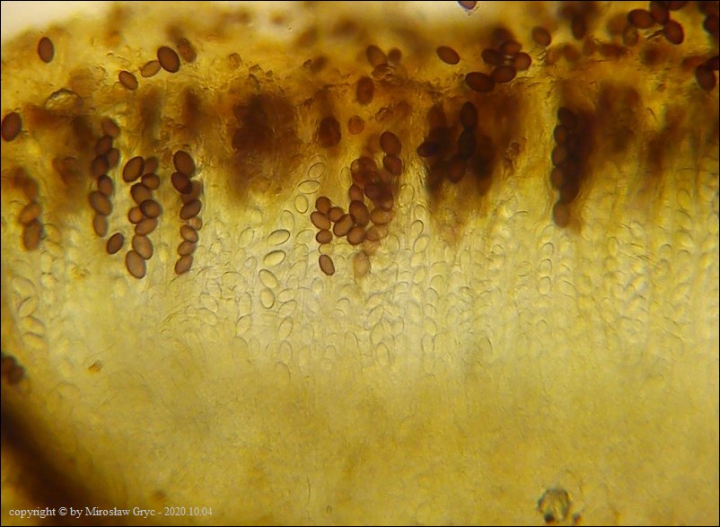 Uwagi: Wyrastał razem z Boubovia ovalispora. Oznaczenie uważam za niepewne ze względu na słaby materiał. Owocnik jak widać słabo dojrzały a co za tym idzie również brak całkowicie dojrzałych zarodników.