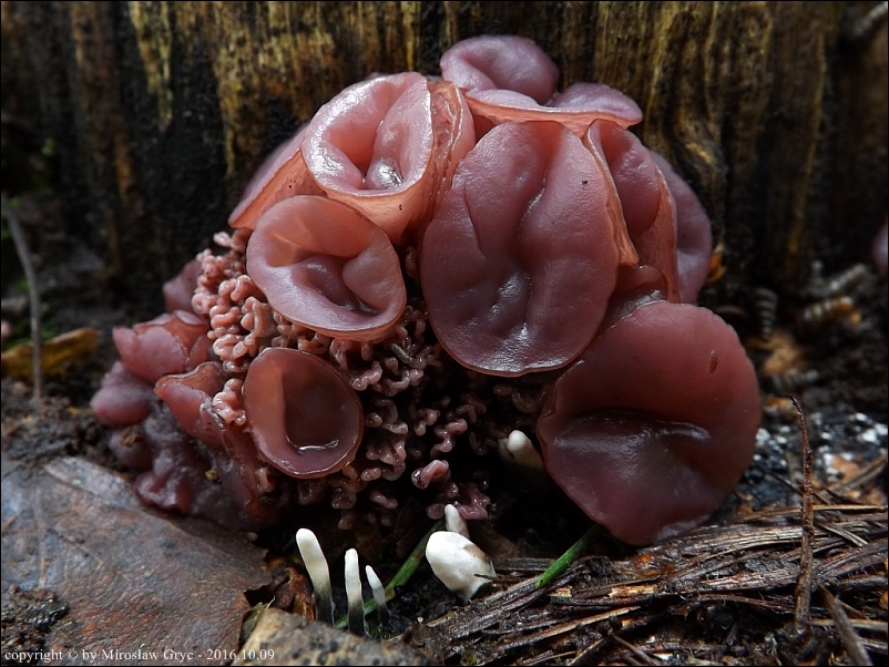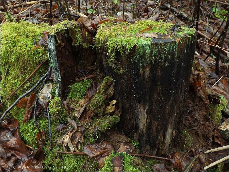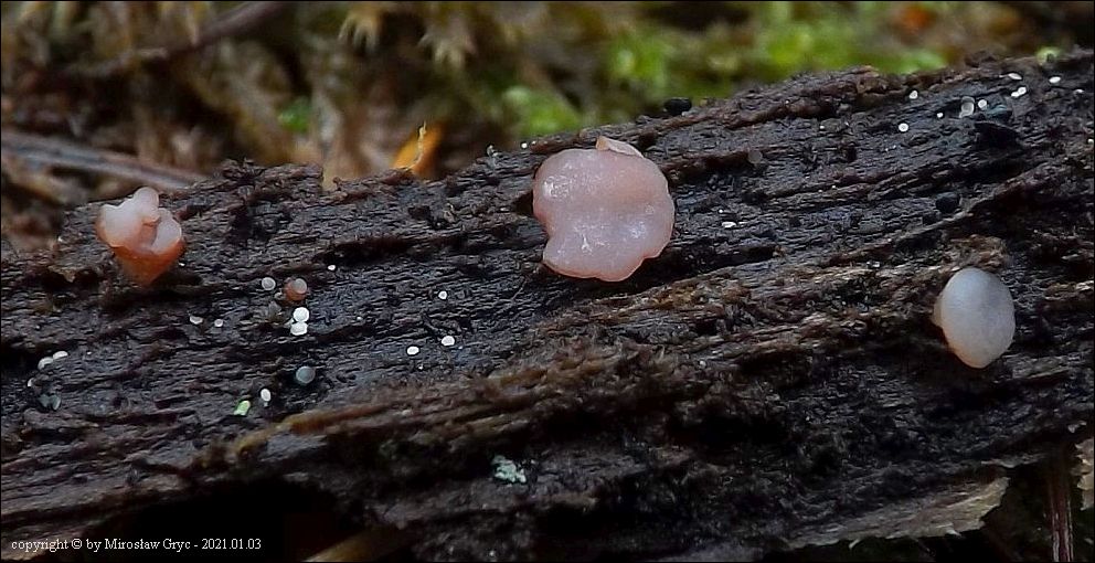 Substrat: Owocniki na butwiejącym pniu sosny.