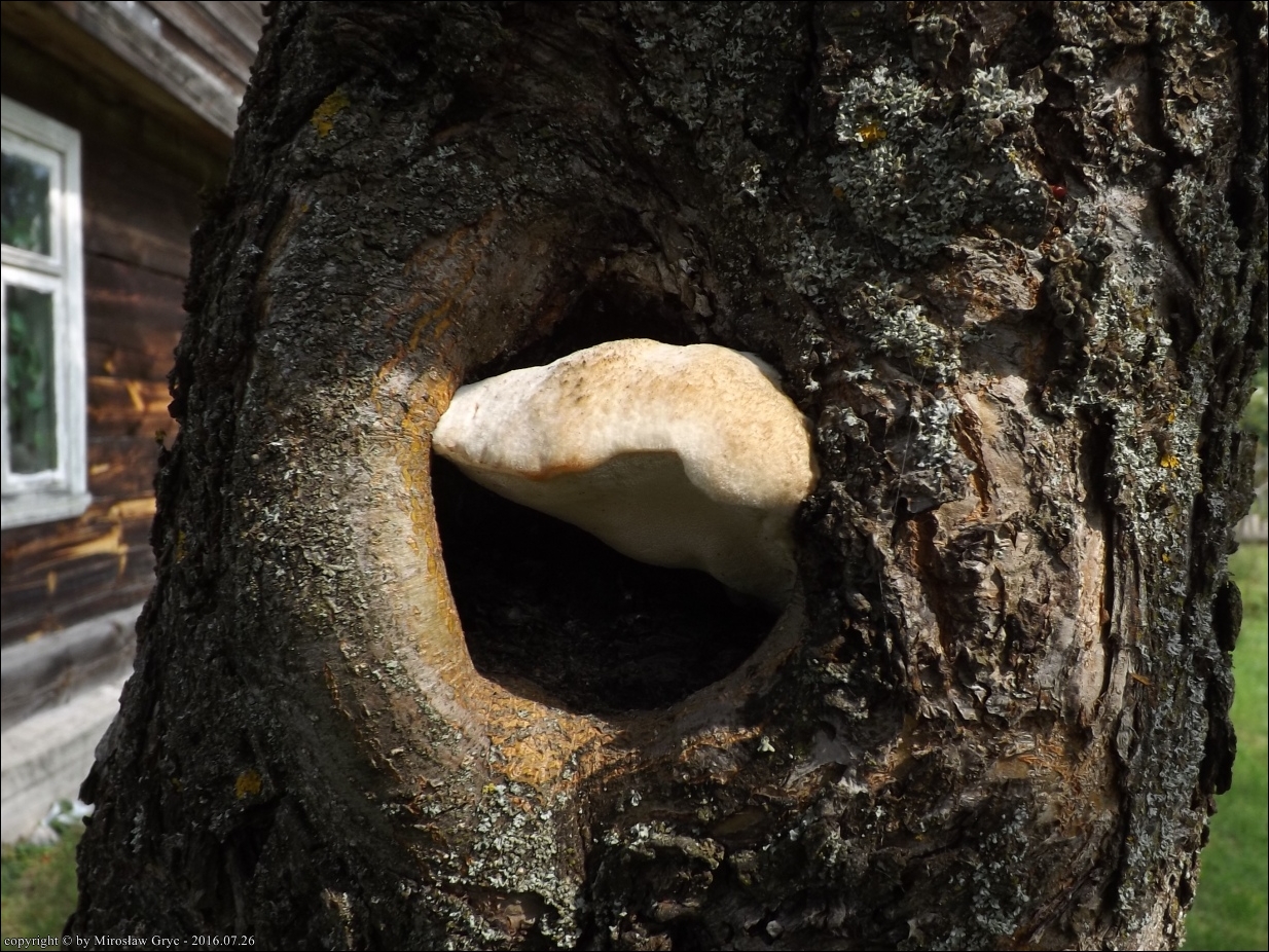 Substrat: Owocnik na jabłoni, w miejscu okaleczenia po ścietej gałęzi.