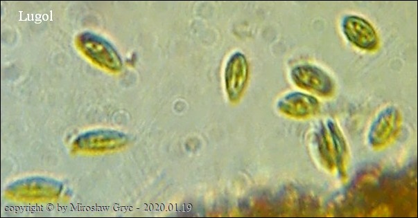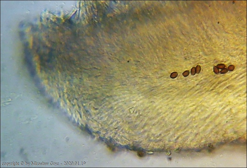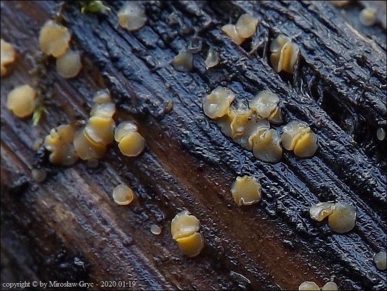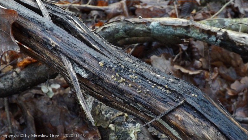 Substrat: Owocniki na pozbawinym kory, konarze grabu (Carpinus betulus).