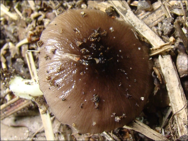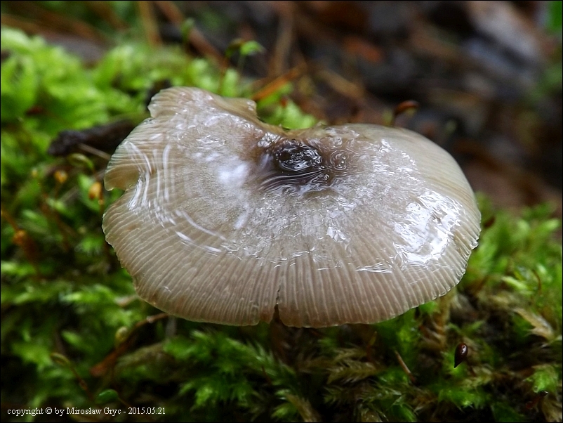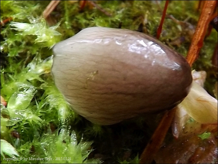 Kapelusz: 1.5-5 cm średnicy, od szeroko dzwonkowatego do szeroko wypukłego, barwy fioletowawej, szarej, lub liliowoszarej, centrum zazwyczaj nieco ciemniejsze; powierzchnia śliska a nawet śluzowata, pokryta charakterystyczną siateczką (nie zawsze dobrze widoczną), zazwyczaj bardziej intensywną w centrum kapelusza.