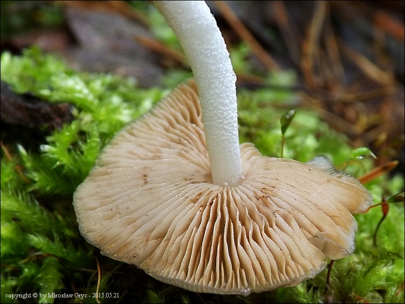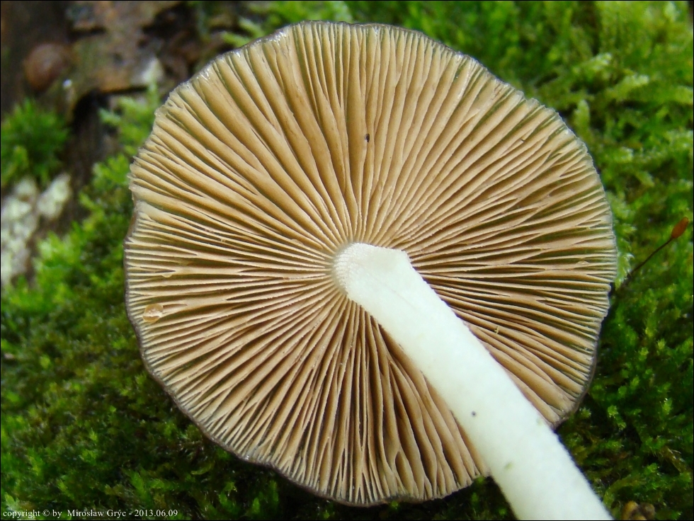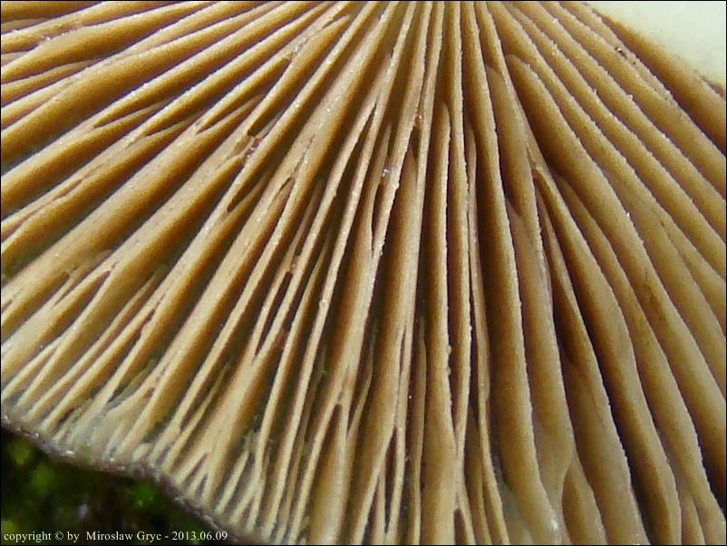 Blaszki: stosunkowo cienkie i gęste, początkowo białe, następnie lekko zaróżowione aż w końcu cynamonowordzawe.
