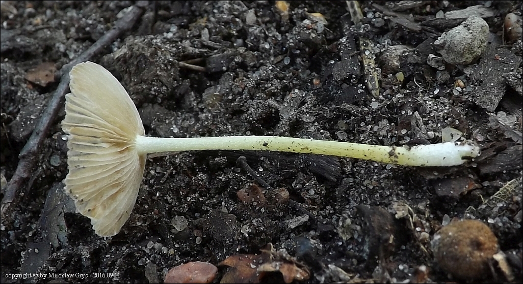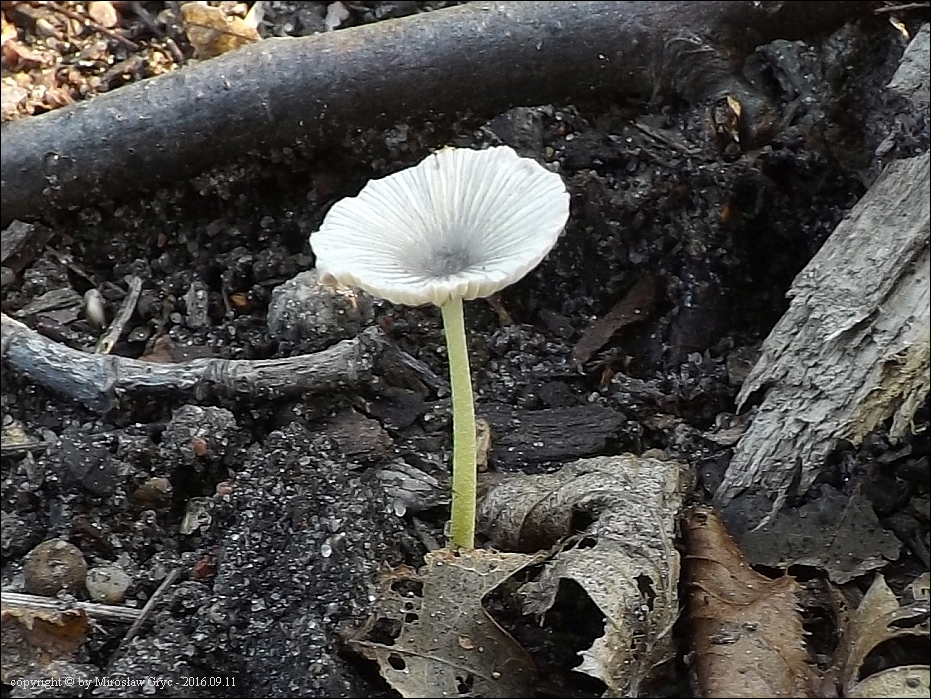 Lokalizacja: Szerokie przydroże w lesie liściastym, miejsce składowania drewna. Jeden owocnik na butwiejących resztkach drewna.