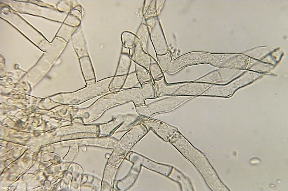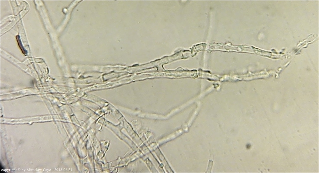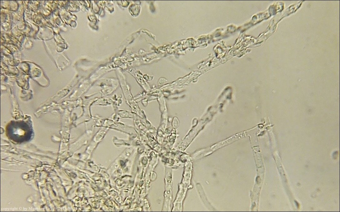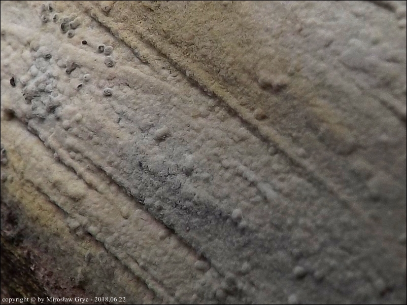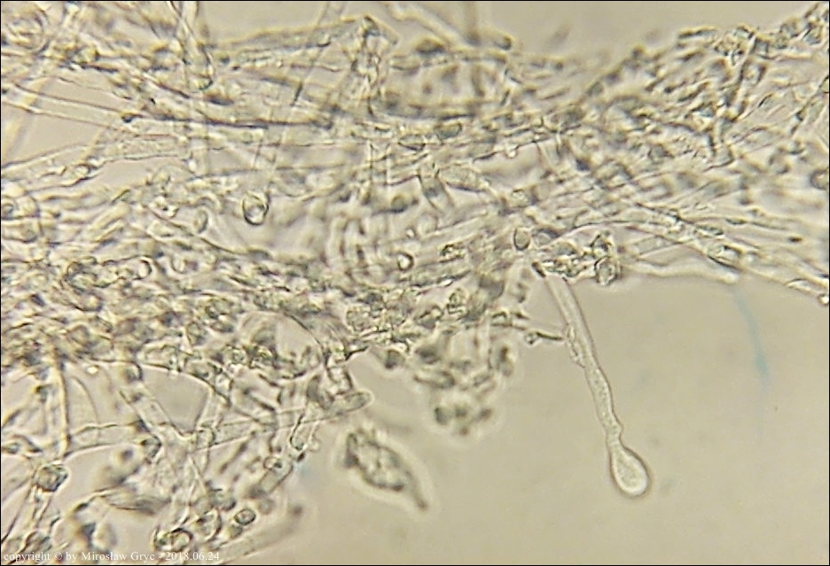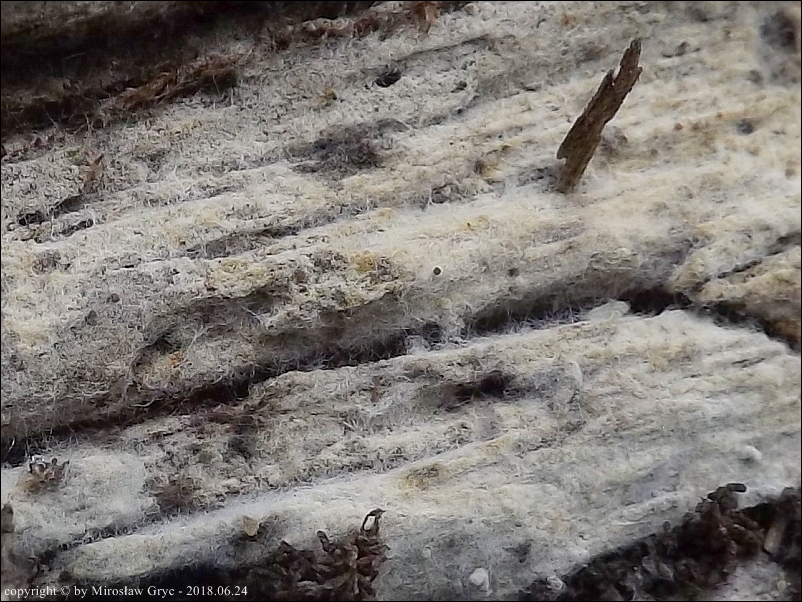 Notatka: Znalezisko o tyle interesujące ponieważ forma doskonała wystepowała jednocześnie z konidialną. Jak do tej pory nie znalazłem wzmianki w literaturze o formie konidialnej tego gatunku Botryobasidium