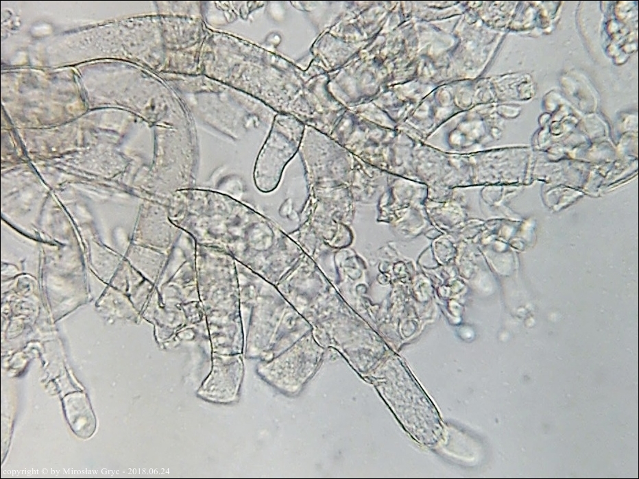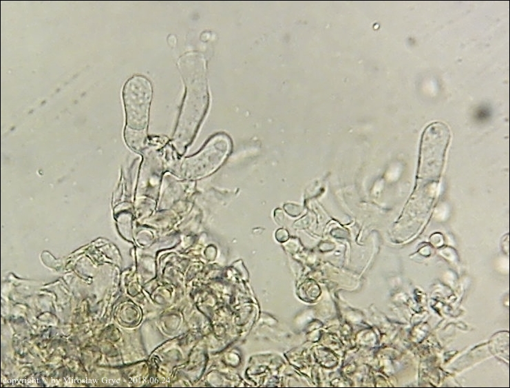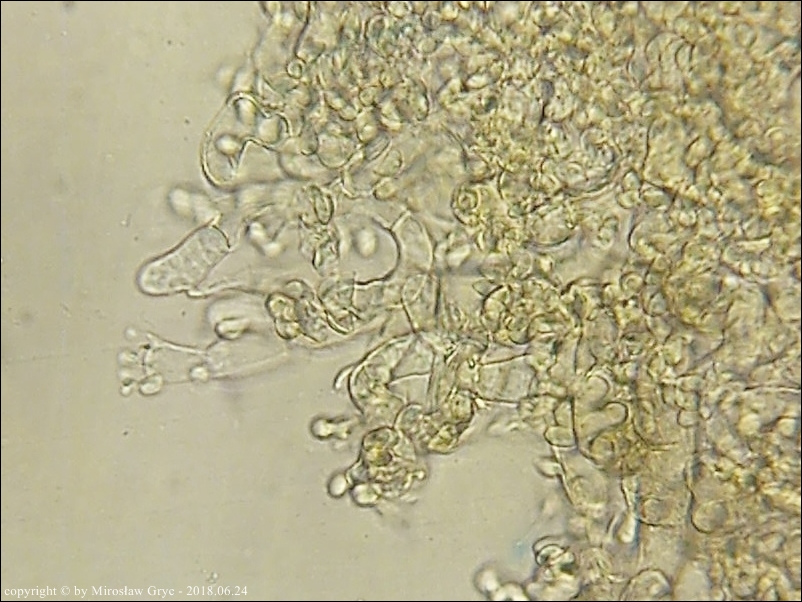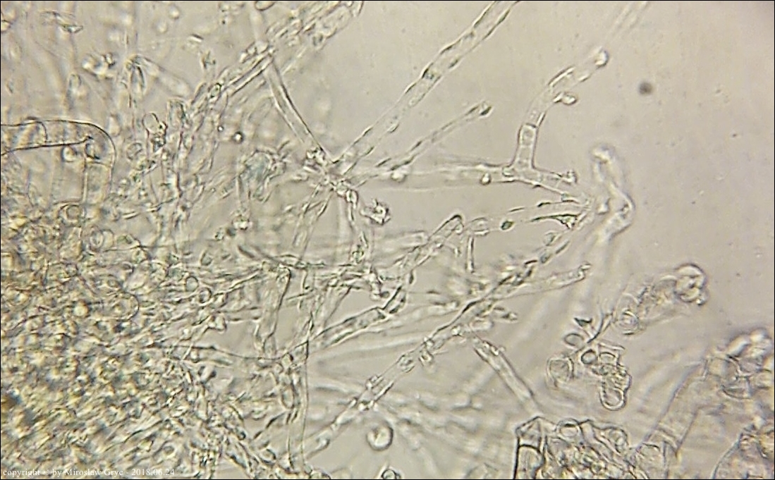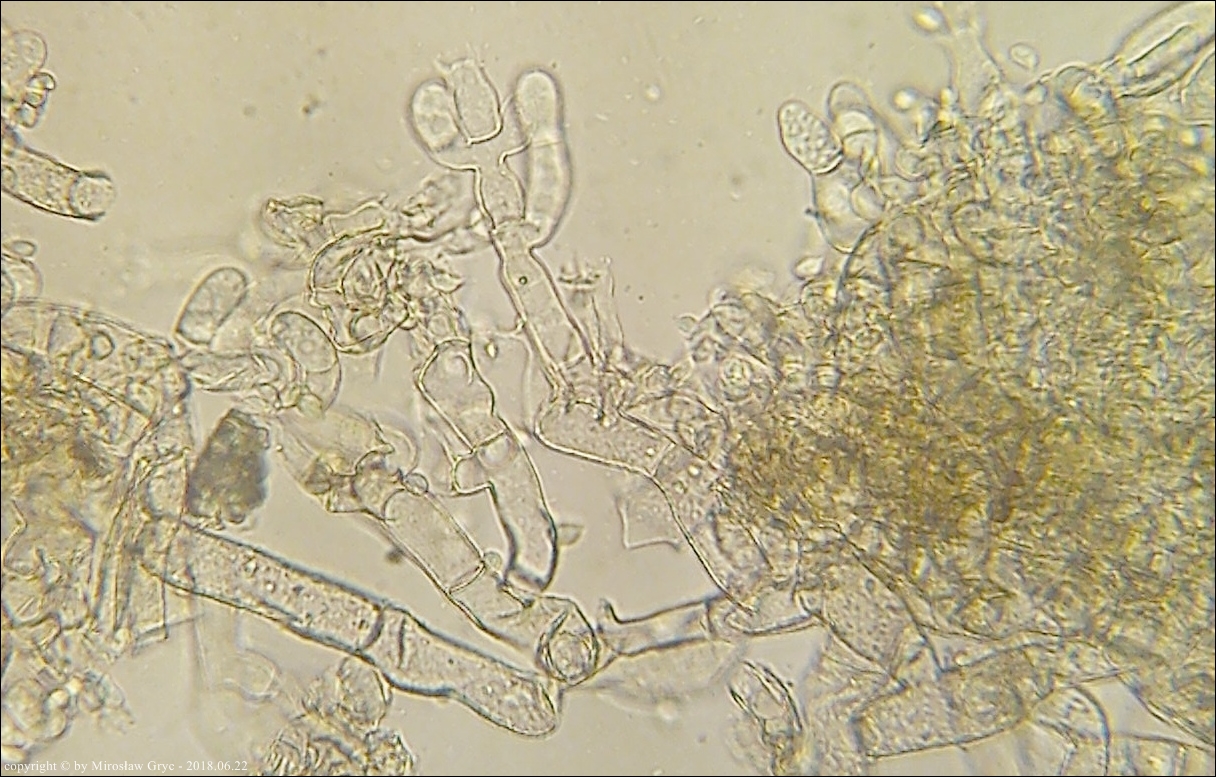 Notatka: Znalezisko o tyle interesujące ponieważ forma doskonała wystepowała jednocześnie z konidialną. Jak do tej pory nie znalazłem wzmianki w literaturze o formie konidialnej tego gatunku Botryobasidium