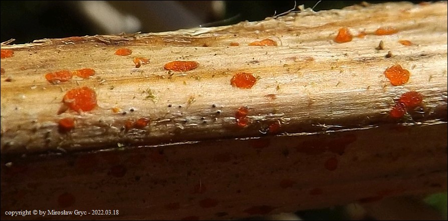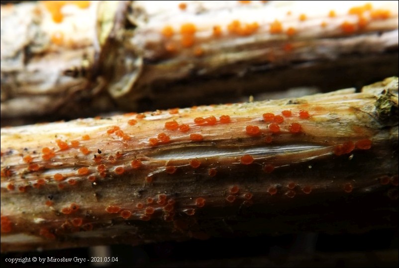 Substrat: Martwe, ubiegłoroczne pędy pokrzywy zwyczajnej (Urtica dioica).