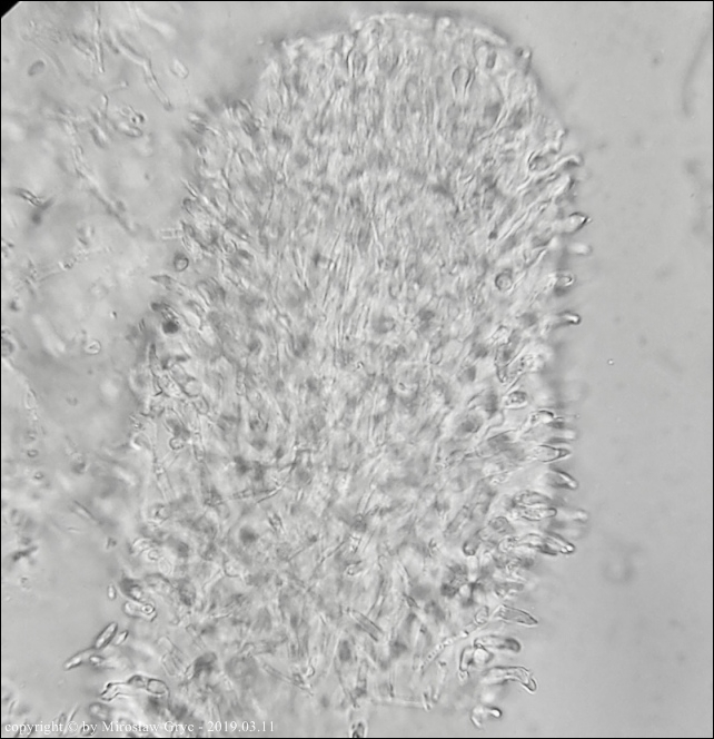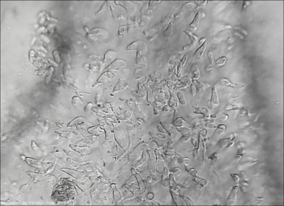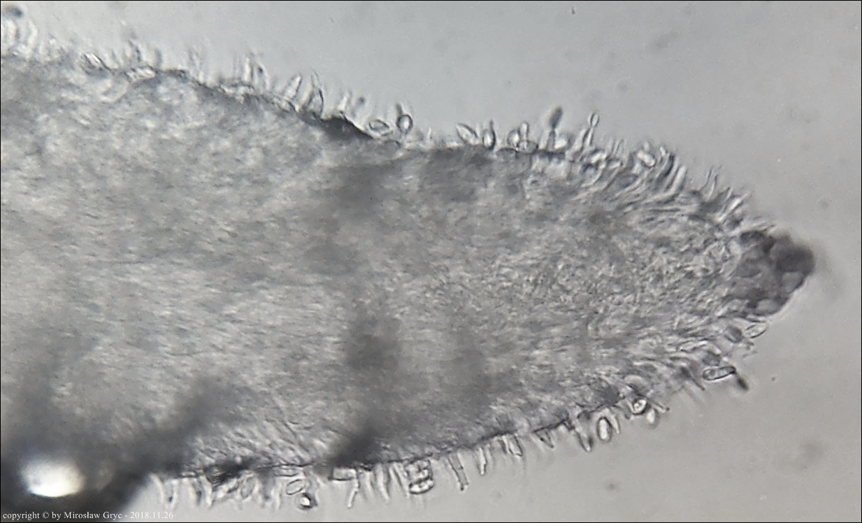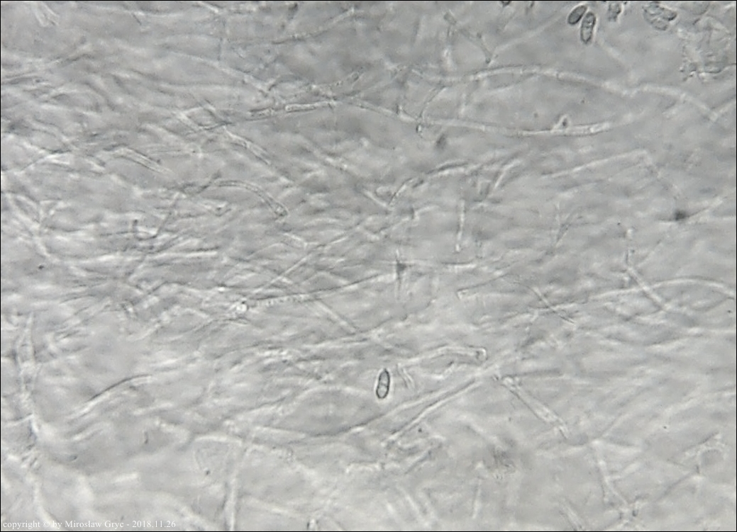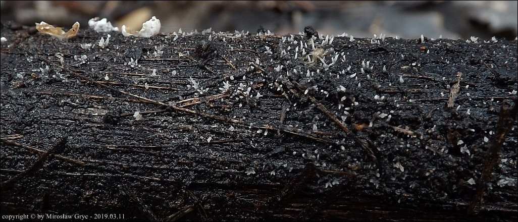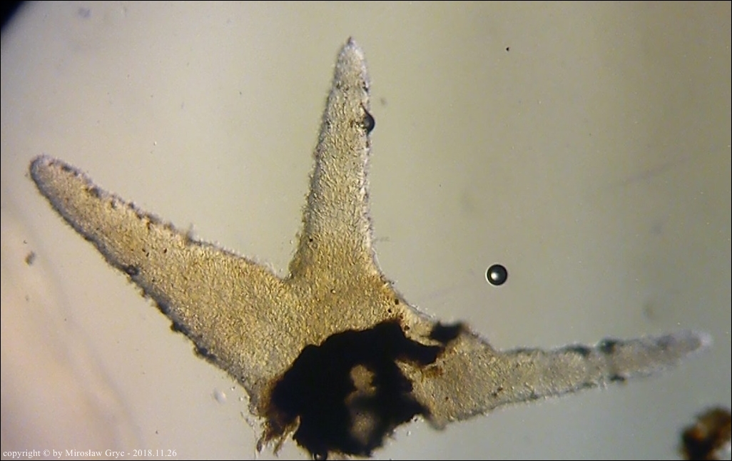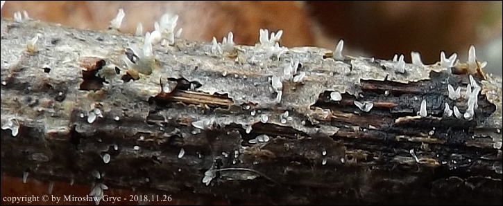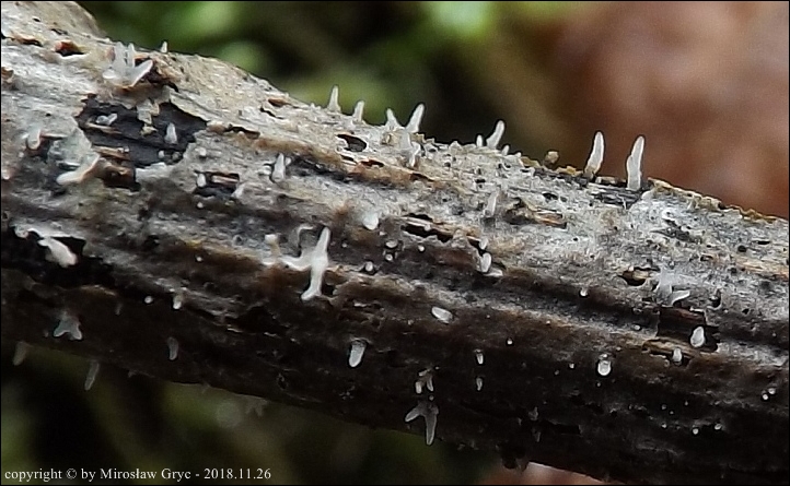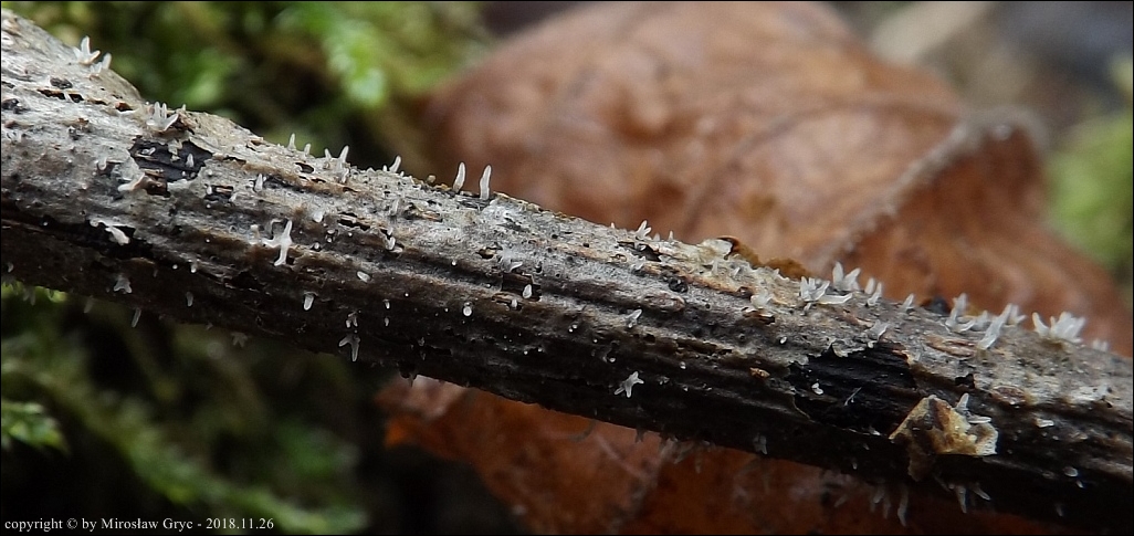 Substrat: Owocniki na cienkiej gałązce liściastego leżącej na ściółce, bliżej nieznanego gatunku.