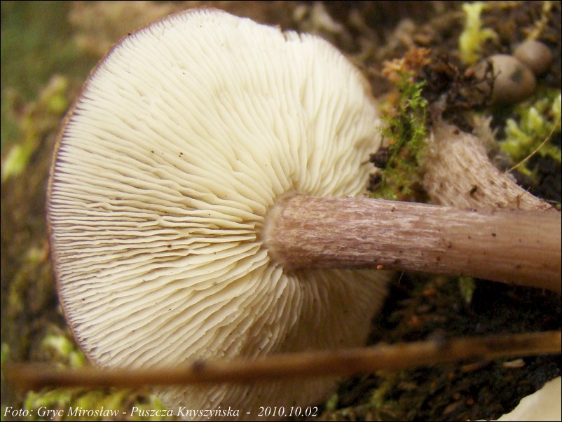 Blaszki: białe, gęste, wolne.