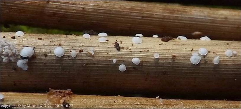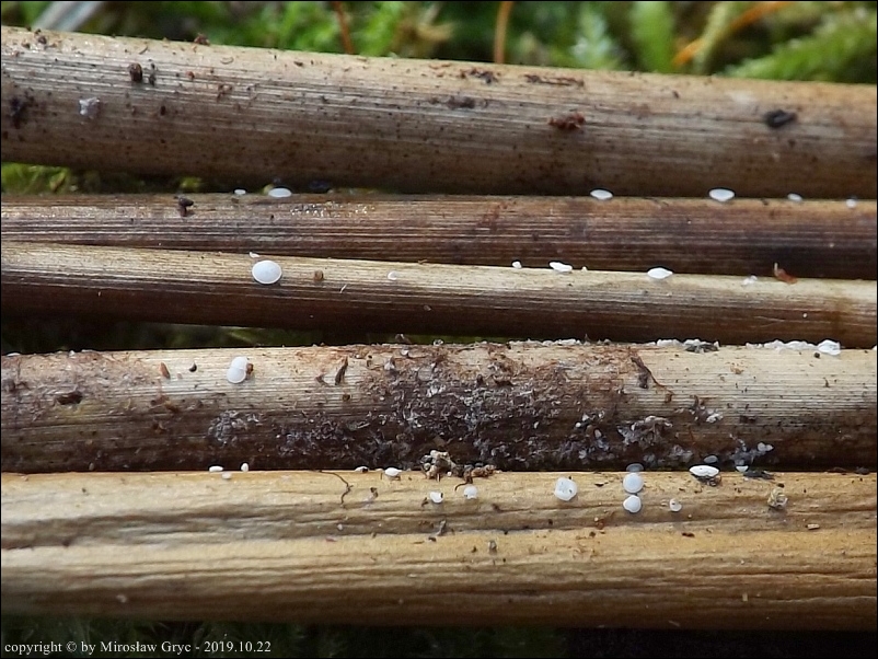 Substrat: Owocniki na martwych źdźbłach situ (Juncus sp.) .