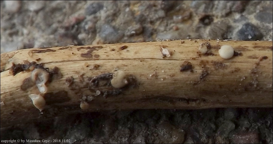 Wyrasta również na martwym drewnie ale zdecydowanie częściej na ubiegłorocznych pędach różnych bylin.