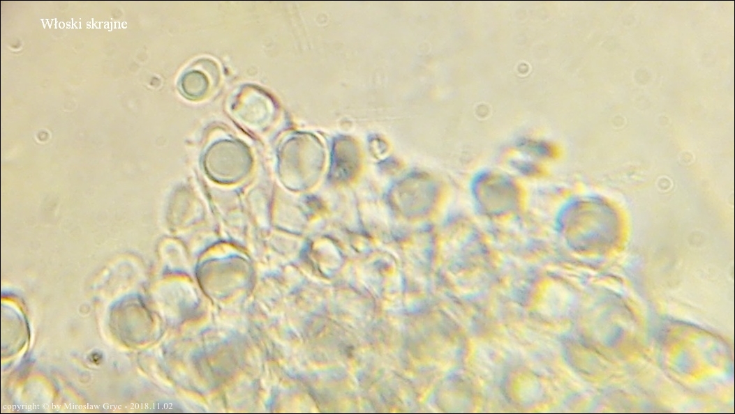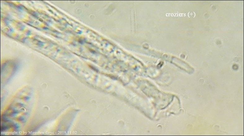 Uwagi wg. Hansa Otto Barala:Calycina subherbarum jest jeszcze jak do tej pory nieopisana i różni się przede wszystkim od C. herbarum obecnością "croziers". Więc można byłoby połączyć oba te gatunki. Istnieją jednak jeszcze inne różnice które potwierdzaja ich odmienność. Krople w zarodnikach są nieco większe w C. herbarum, a z kolei owocniki C. subherbarum z reguły są większe. C. "subherbarum": asci z croziers, zawartość oleju w zarodnikach 2-4, LB średnio duże 0,5-1,8 (2,1) µm, owocniki 0,7-3,5 mm, zarodniki tworzą licznie konidia 4,5-7 / 1,3-1,7 µm. C. herbarum: asci bez croziers, zawartość oleju w zarodnikach 4-5, LB większe 1,5-2,5 µm, owocniki 0,4-1,2 mm, konidia inne(?).