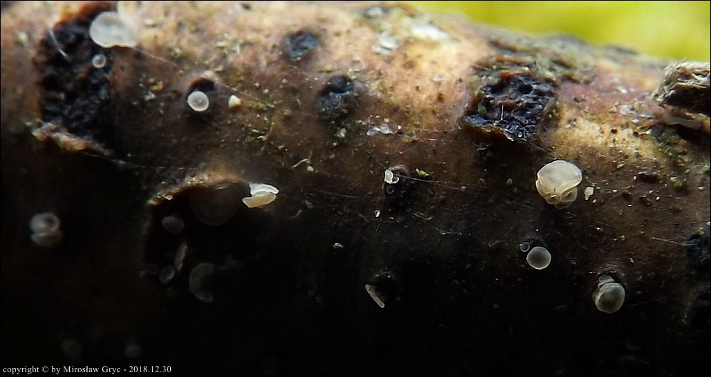 Substrat: Owocniki na martwych gałązkach wierzby (Salix sp.) .