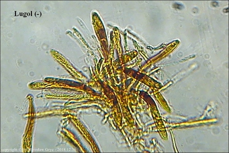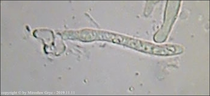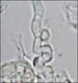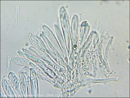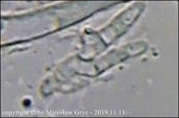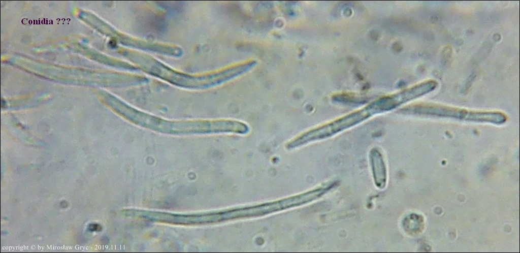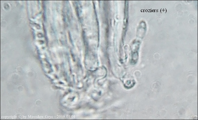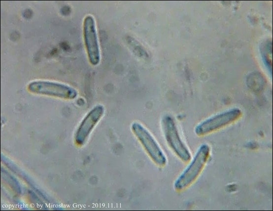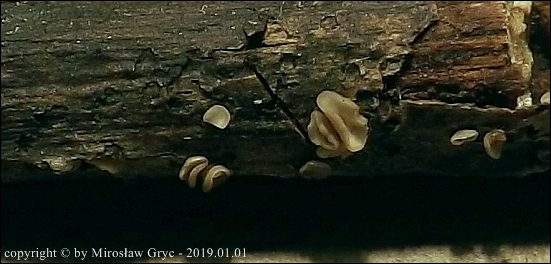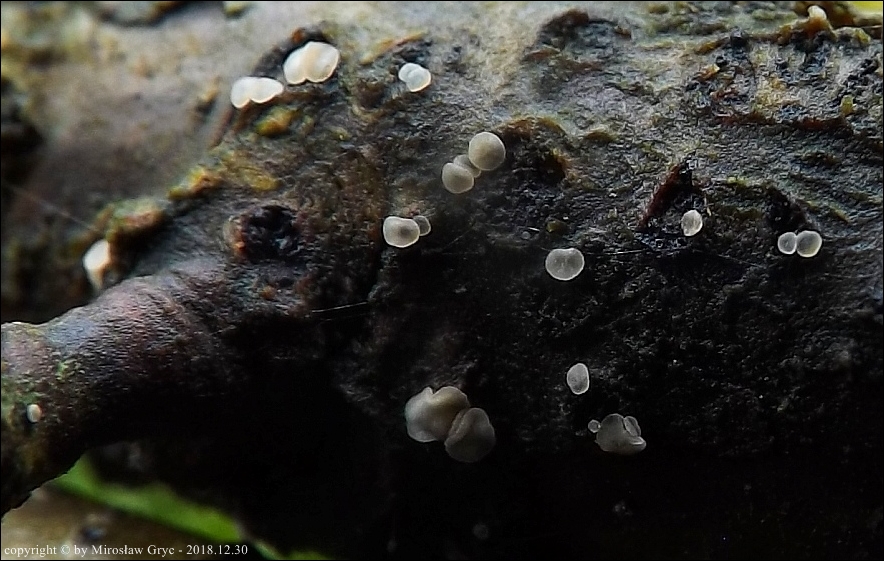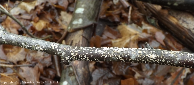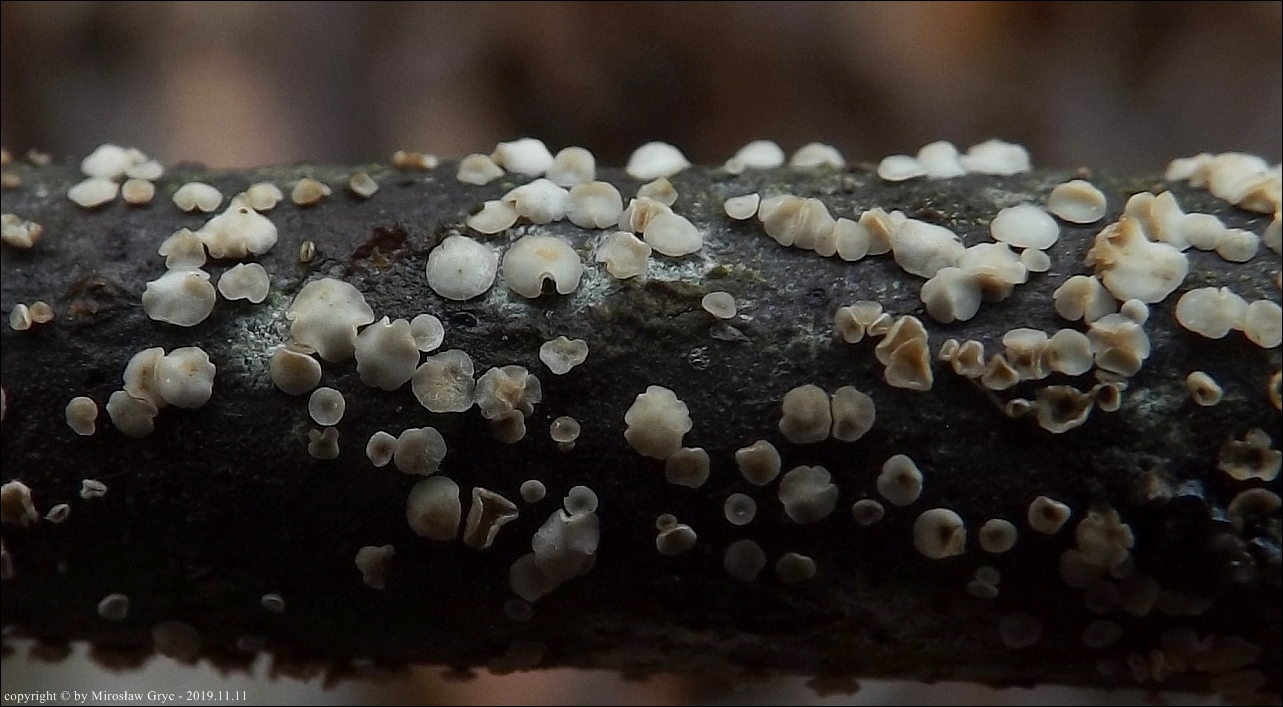 Substrat: Owocniki na martwej gałęzi leszczyny pospolitej (Corylus avellana) .