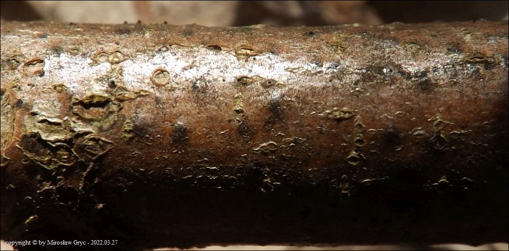 Substrat: Martwe gałązki grabu pospolitego (Carpinus betulus) .