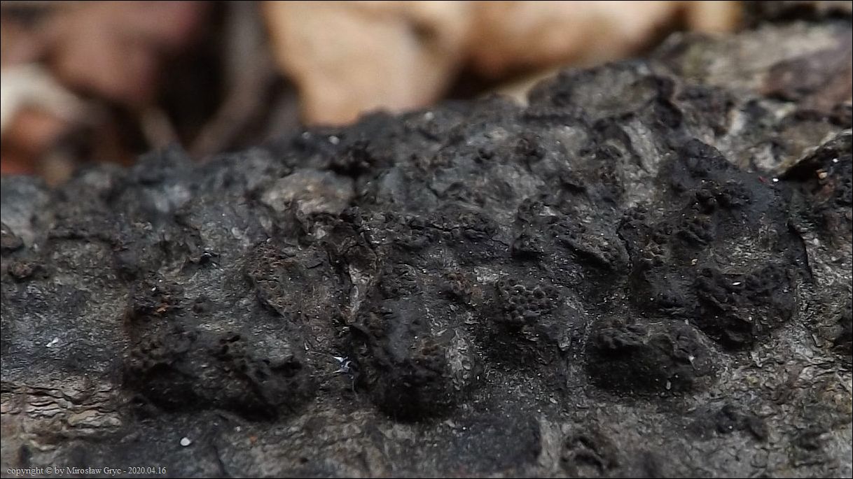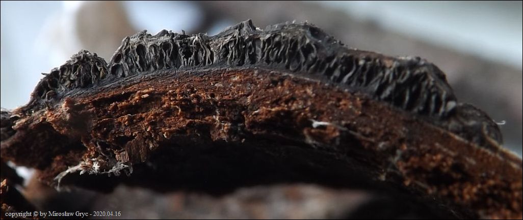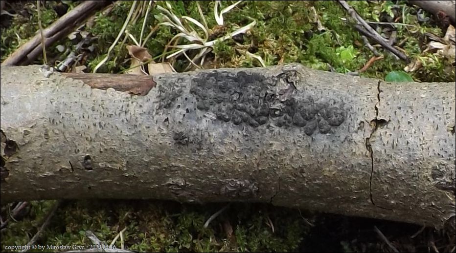 Substrat: Owocniki na fragmencie gałęzi olszy (Alnus sp.), leżącym na sciółce.