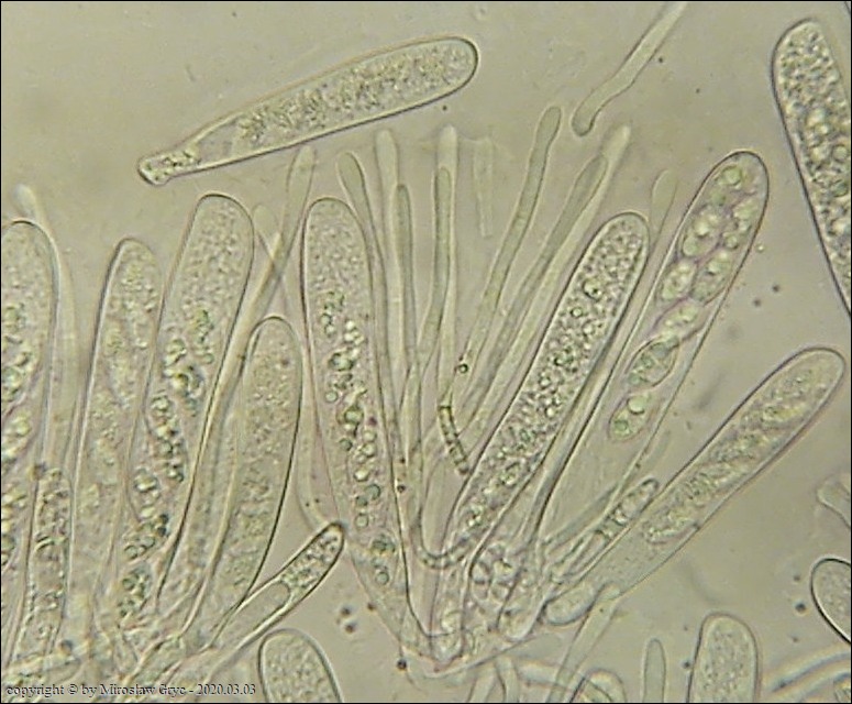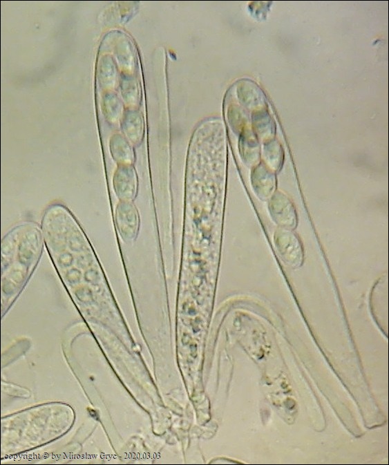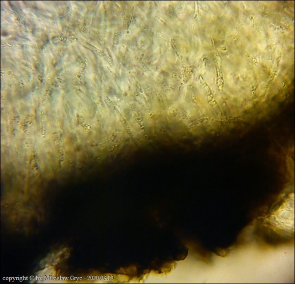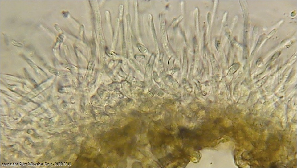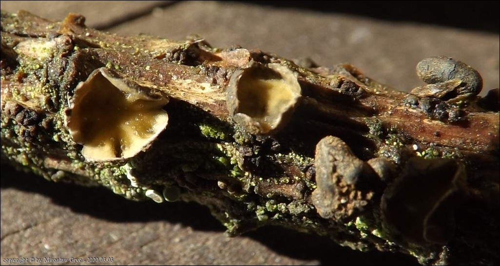 | Puszcza Knyszyńska, Czołnowo. | Owocniki masowo na leżacych na ziemi gałęziach sosny (wierzchy). | Stanowisko ujęte w pracy zespołowej: Grzyby Puszczy Knyszyńskiej - Anna Kujawa, Błażej Gierczyk, Mirosław Gryc, Marek Wołkowycki - 2019 rok. |