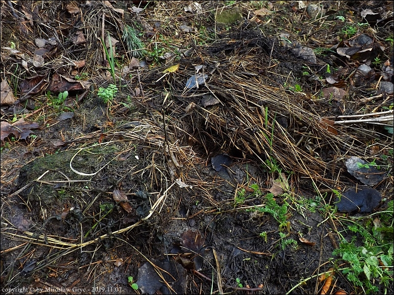 Substrat: Owocniki na wywiezionej z ogrodu, gnijącej kupie odpadów pochodzenia roślinnego (chwasty).