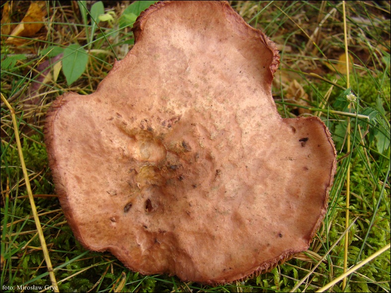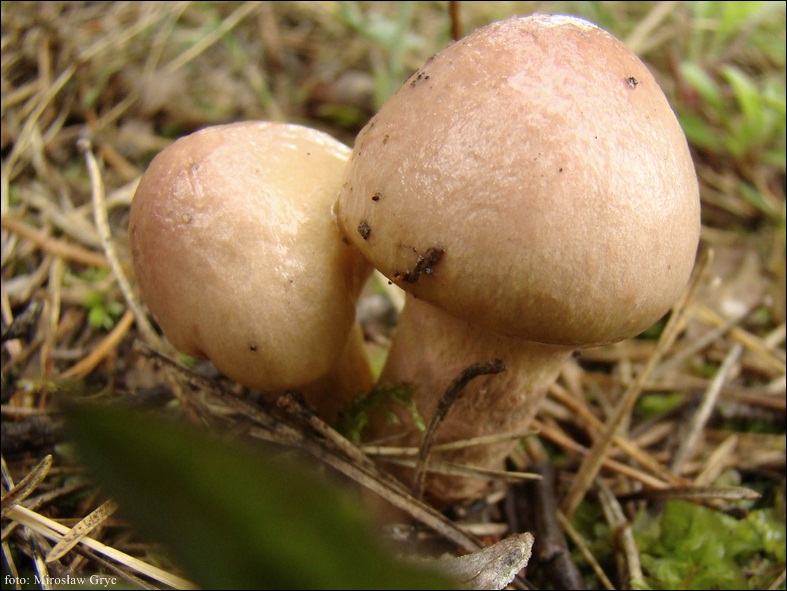 Kapelusz: średnicą dorastający do 8 cm, w skarajnych przypadkach nawet do 15 cm; barwy miedzianobrązowej, winnoczerwonej, dość często z fioletowym odcieniem; kształtu pólkolistego, z wiekiem stożkowato-wypukłego, aż do prawie zupełnie płaskiego, przeważnie z centralnym spiczastym garbkiem; powierzchnia gładka, w czasie wilgotnej pogody śluzowata; brzeg długo podwinięty; młode owocniki z wyraźną, pajęczynowatą zasnówką.