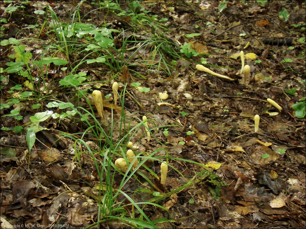 Substrat: Ziemia, około 60-70 owocników w różnym wieku, rozsianych na znacznej powierzchni.