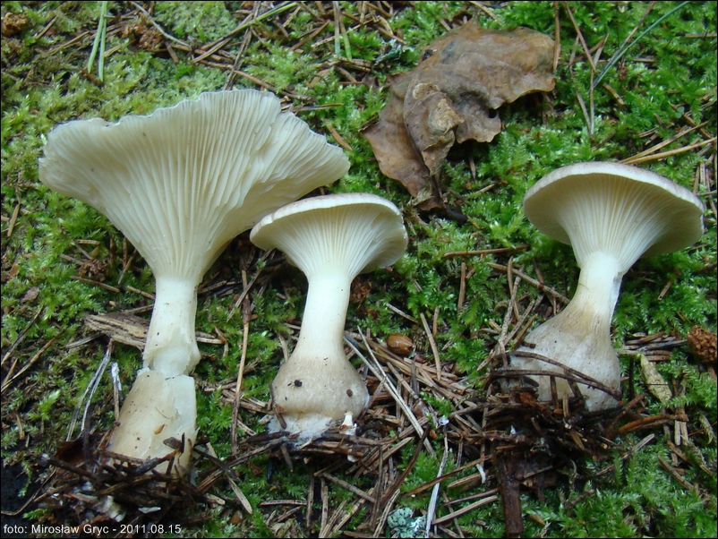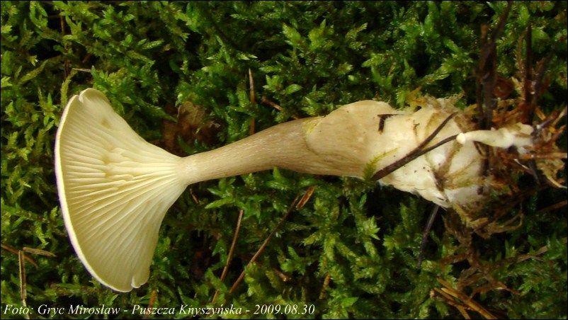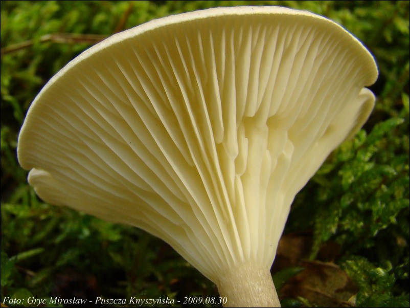 Blaszki: początkowo białe, z wiekiem lekko żółknące, zbiegające na trzon, z międzyblaszkami i czasem rozwidlone.