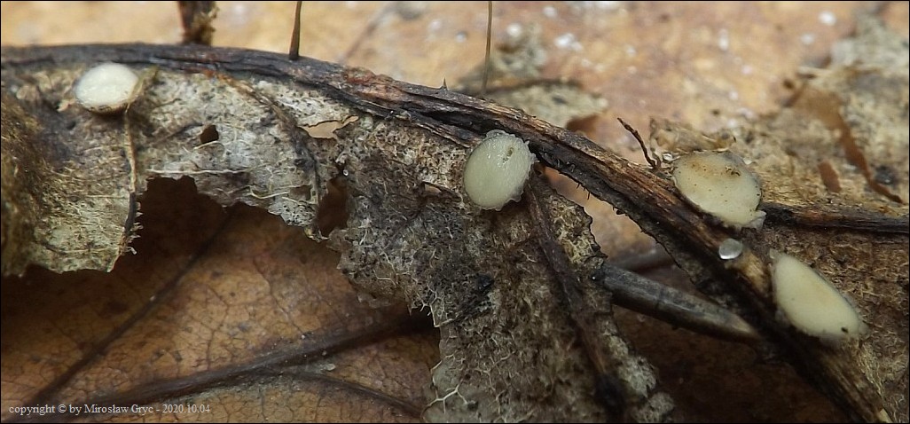 Substrat: Owocniki na liściu dębu (Quercus sp.) leżacym na ziemi. Gatunek określił na podstawie zdjęć Hans-Otto Baral ... Danke!