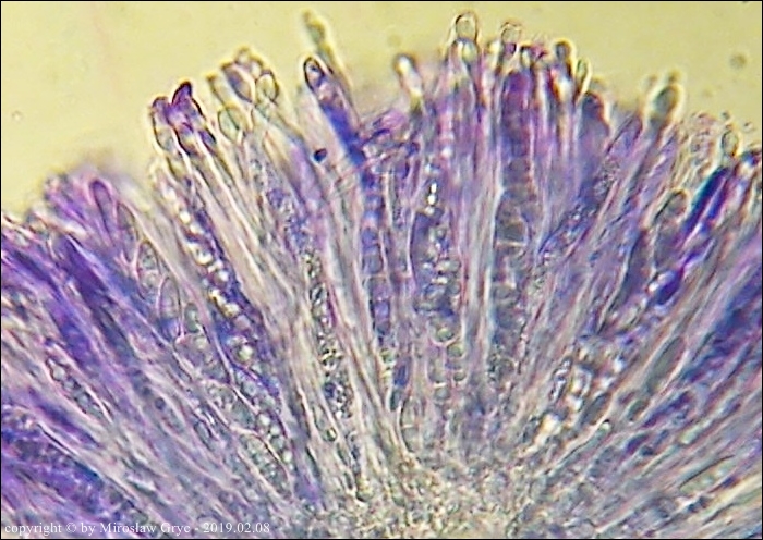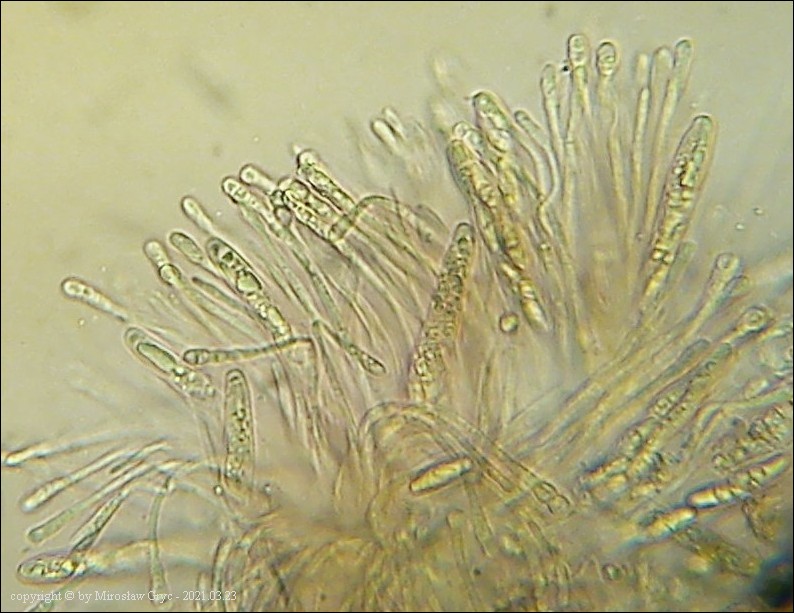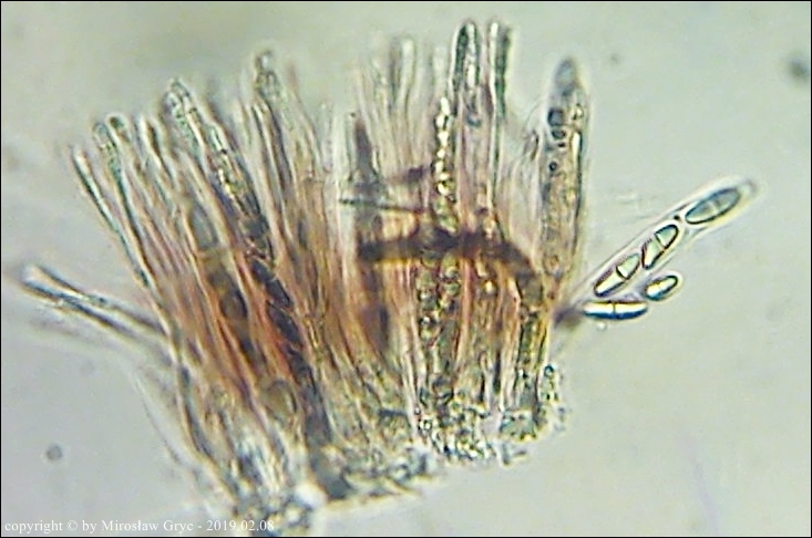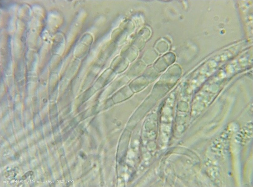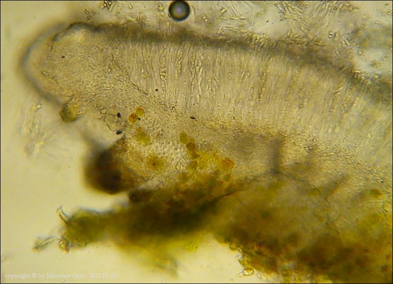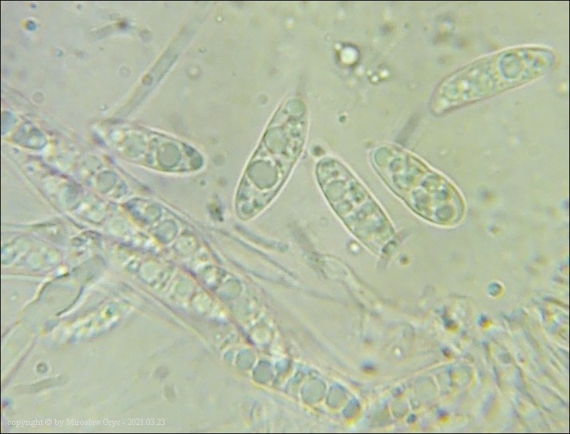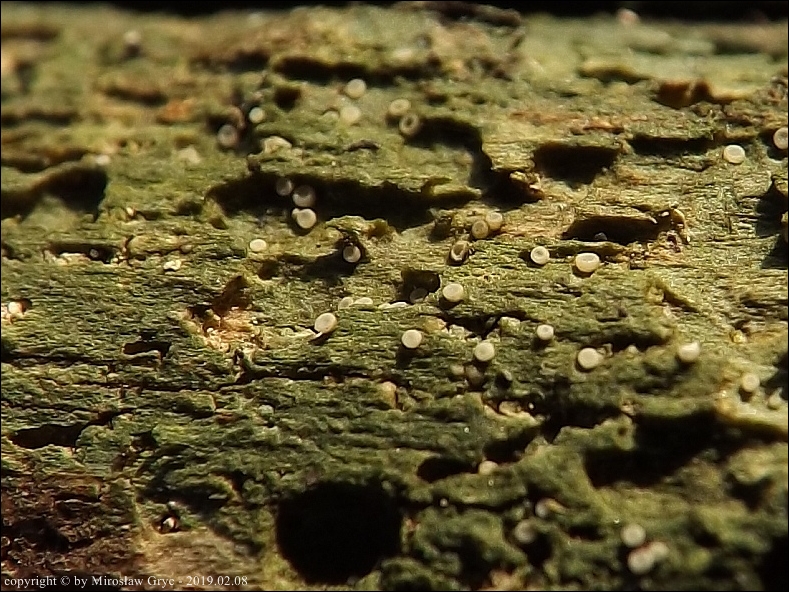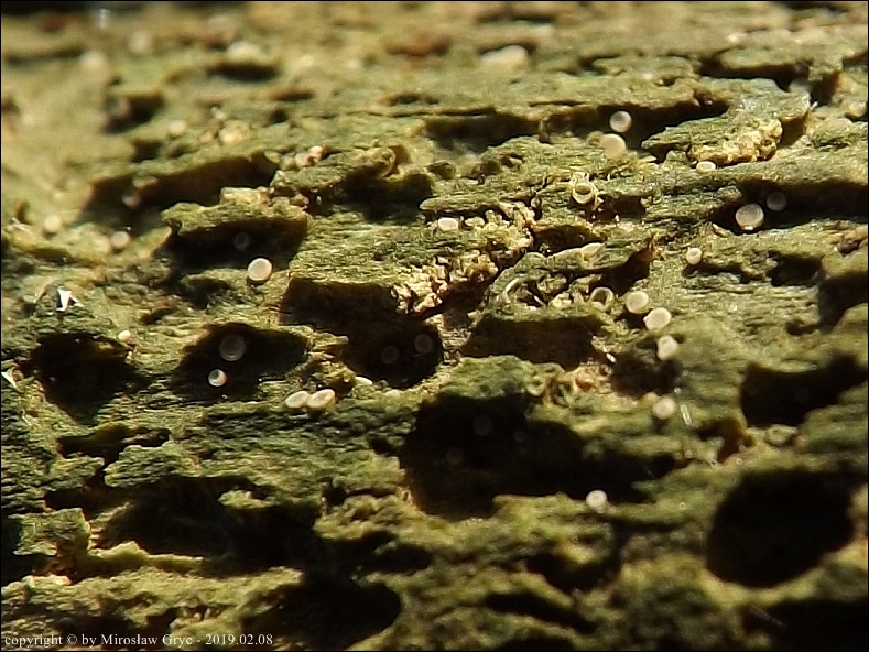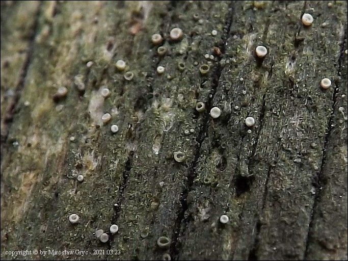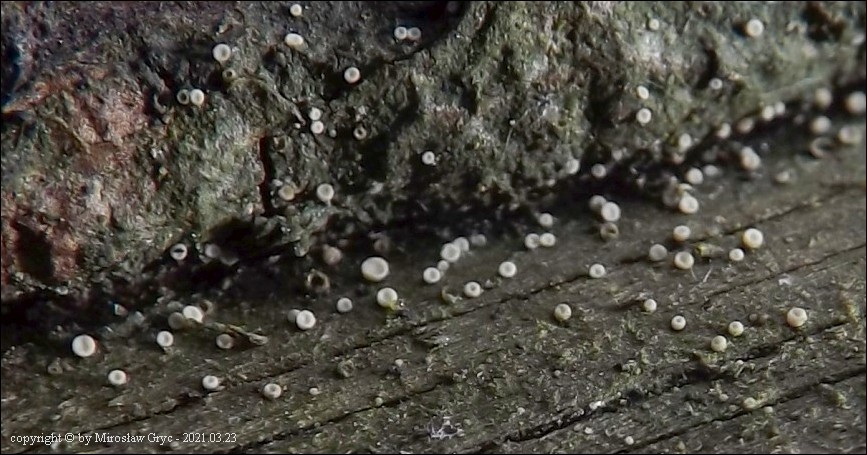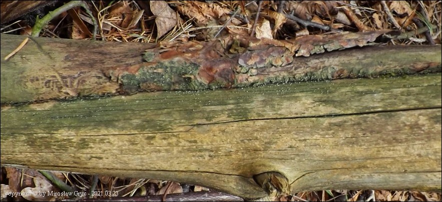 Substrat: Owocniki na fragmencie gałązki leżącej na ziemi, prawdopodobnie modrzewiowej(?).