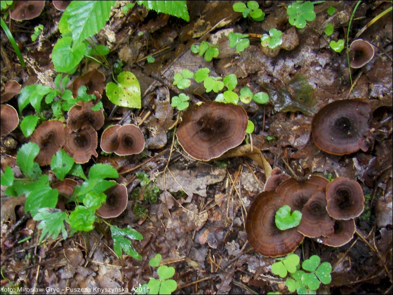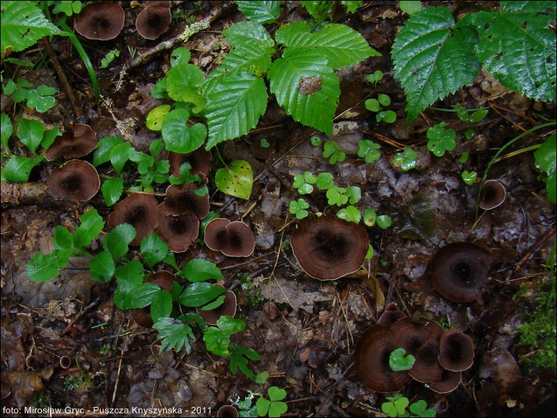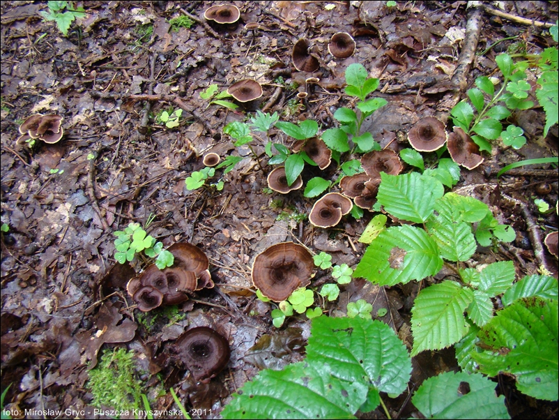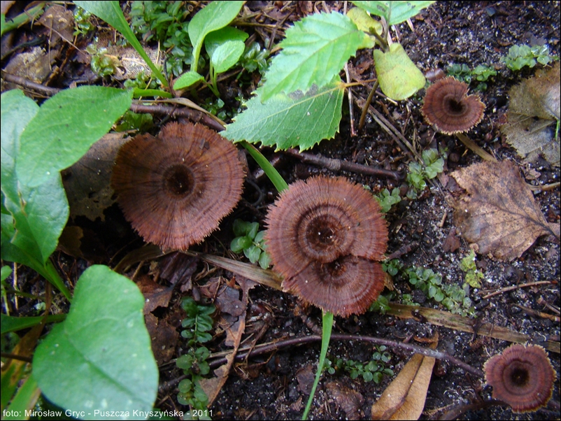 Lokalizacja: Puszcza Knyszyńska. Stanowisko bardzo mocne, około 50-60 sztuk. Większość owocników wyrastała na z lekka wyjeżdżonych, koleinach drogi leśnej lub w ich pobliżu, w sąsiedztwie rozłożystego dąbu w średnim wieku. Owocniki mocno przemoczone.