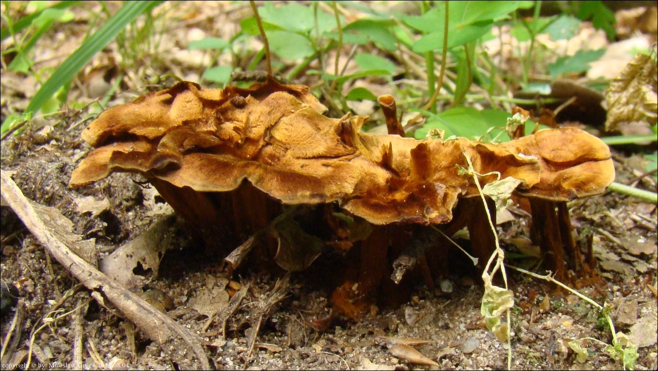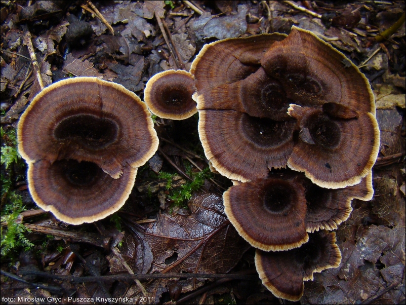 Substrat: Grupka owocników w dobrze nasłonecznionym miejscu, na poboczu drogi, w lesie liściastym (grab, dąb) z bardzo małym udziałem iglastych (świerk).