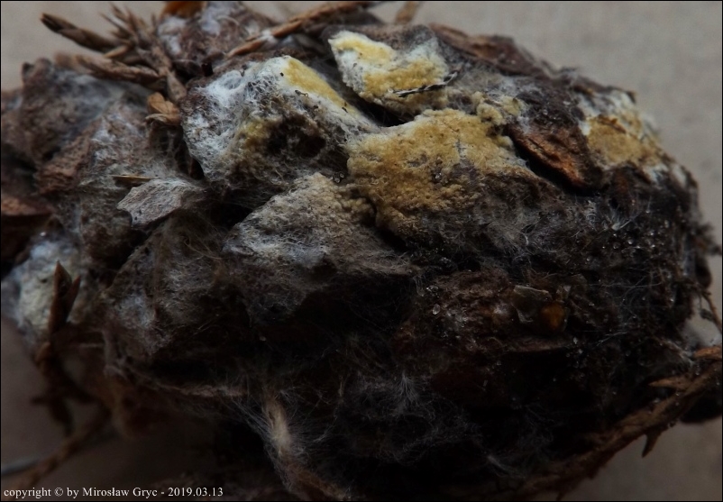 Substrat: Owocnik rozpostarty na szyszkach sosnowych.