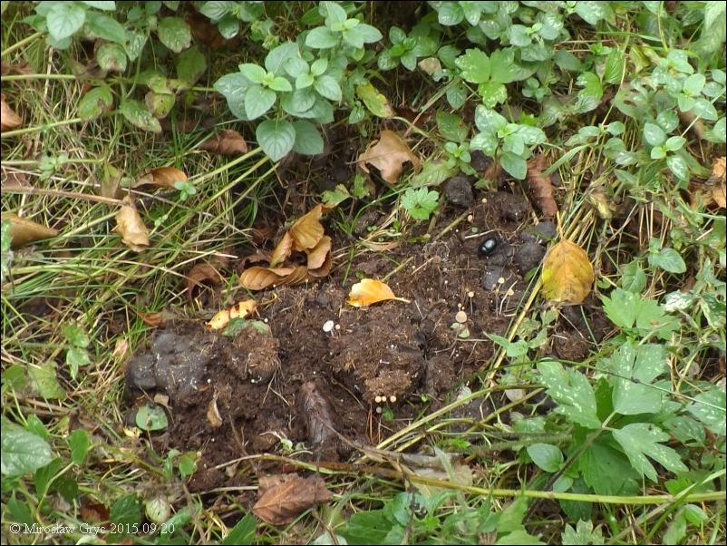 Substrat: Zachwaszczony rzadki las; odchody dzika.