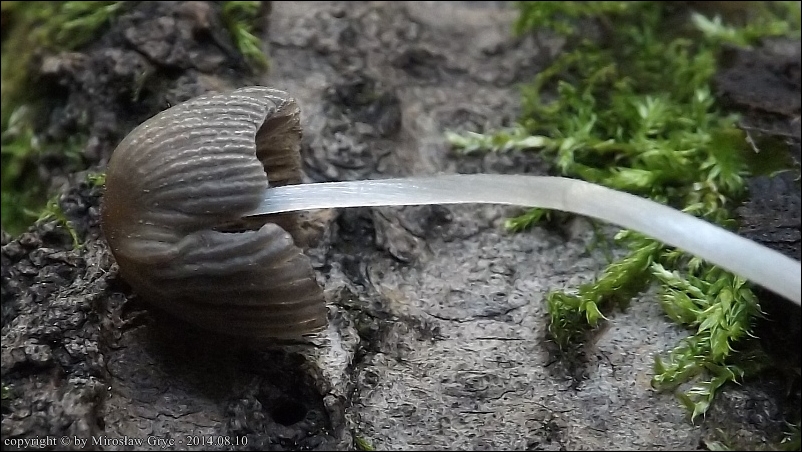 Substrat: Owocniki wyrastały na butwiejących liściach, leżących na błotnistej ziemi. Teren okresowo zalewany.