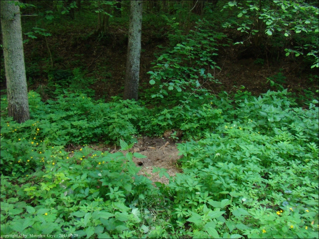 Siedlisko: Las mieszany, przydrożny dół wypełniony odpadami z pobliskiego gospodarstwa.