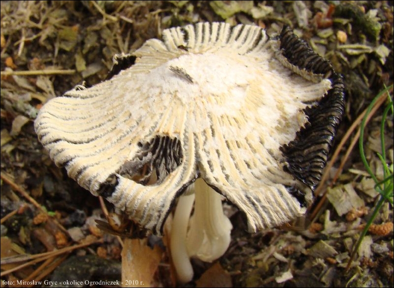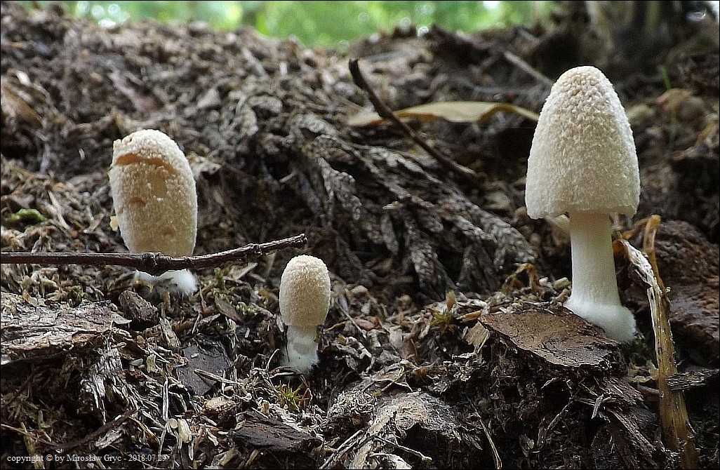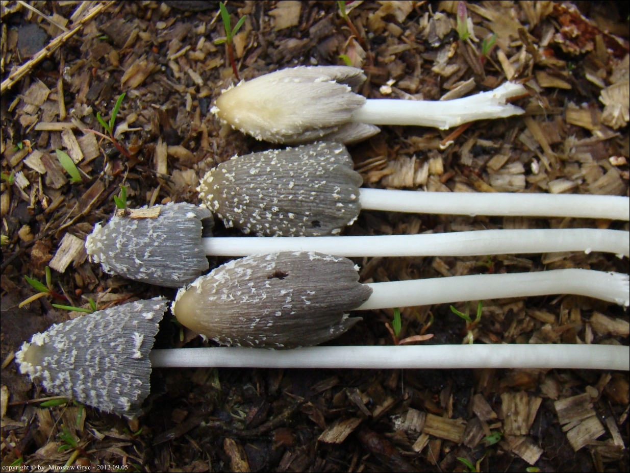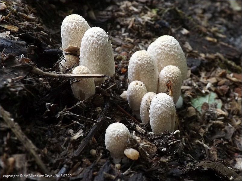 | 2015.05.21 (dwie kolekcje) | Ogrodniczki, 0,8 km E. | Las iglasty, przydroże. I grupa: wywiezione do lasu siano zmieszane z otrebami. II grupa: kupa trocin. Numer wątku na Bio-Forum: 33/756647. Mikroskopował Błażej Gierczyk. Publikacja: Błażej Gierczyk, Mirosław Gryc (2024). Materiały do poznania grzybów podstawkowych Puszczy Knyszyńskiej i jej przedpola. Przegląd Przyrodniczy XXXV, 2 (2024): 3-65 (jako: Coprinellus flocculosus). |