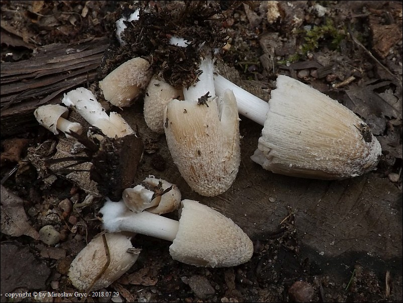 | 2013.05.27 | Ogrodniczki, 1 km S. | Śródpolne zadrzewienie, trawiasta droga; ziemia. Numer wątku na Bio-Forum: 33/561875. Mikroskopował Błażej Gierczyk. Publikacja: Błażej Gierczyk, Mirosław Gryc (2024). Materiały do poznania grzybów podstawkowych Puszczy Knyszyńskiej i jej przedpola. Przegląd Przyrodniczy XXXV, 2 (2024): 3-65 (jako: Coprinellus flocculosus). |