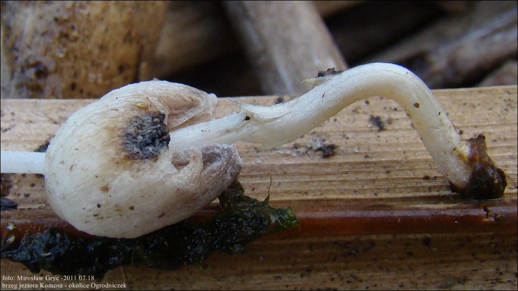 Substrat: Ich siedliskiem była, leżąca częściowo w wodzie, kupa wykoszonej trzciny i innej roślinności wodnej. Owocniki wystepowały na częściach roślin pływających na powierzchni wody a tym samym zasobnych w wilgoć.