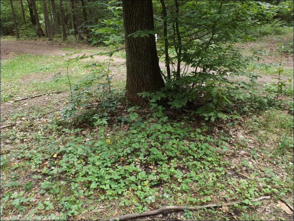Substrat: Ziemia, u podstawy samotnego dąbu rosnącego na rozdrożu.