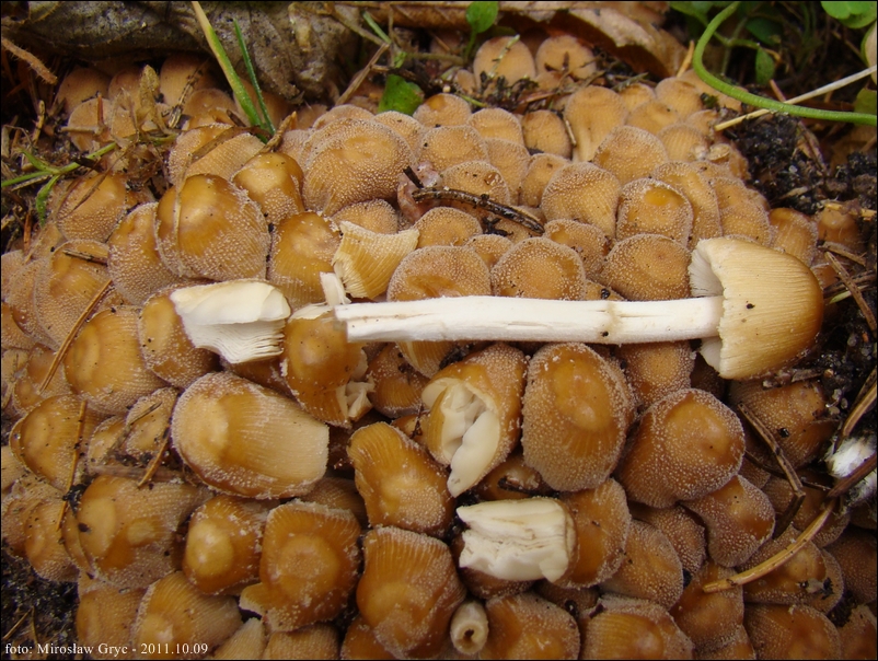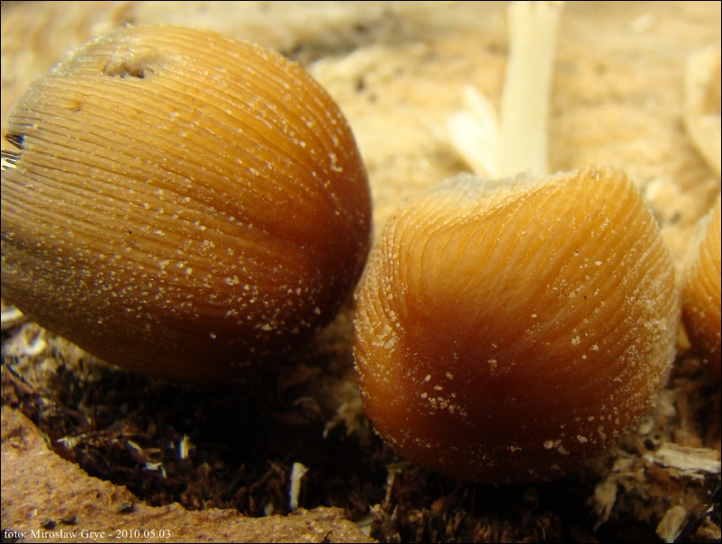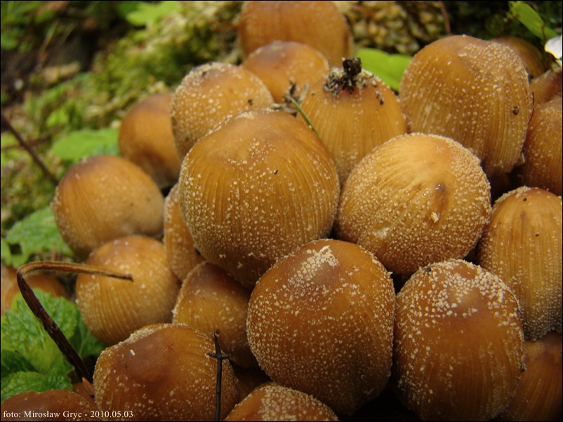 | 2015.10.25 | Puszcza Knyszyńska, Krasny Las. 2 km SE. | Bór sosnowy; przydroże usłane resztkami drewna; butwiejące resztki drewna porośnięte pokrzywami. Numer wątku na Bio-Forum: 33/797578. Mikroskopował Błażej Gierczyk. Publikacja: Błażej Gierczyk, Mirosław Gryc (2024). Materiały do poznania grzybów podstawkowych Puszczy Knyszyńskiej i jej przedpola. Przegląd Przyrodniczy XXXV, 2 (2024): 3-65 (jako: Coprinellus micaceus). |