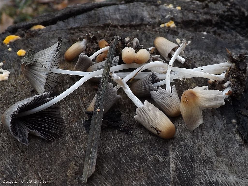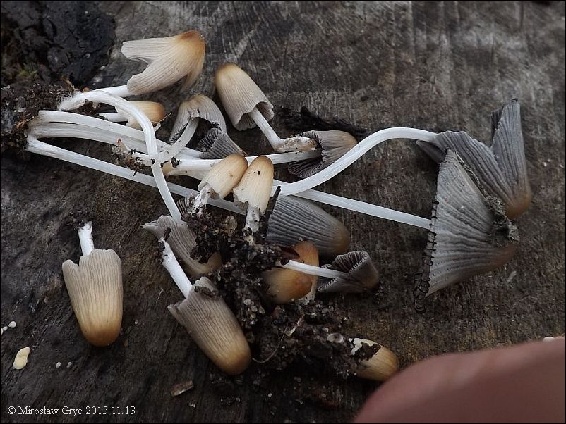 | 2015.10.25/2015.11.13 | Puszcza Knyszyńska, Krasny Las, 2-2.5 km SE. | Przydroże; resztki drewna.(Pięć kolekcji zebranych na odcinku około 0.5 km.) Numer wątku na Bio-Forum: 33/797578. Mikroskopował Błażej Gierczyk. Publikacja: Błażej Gierczyk, Mirosław Gryc (2024). Materiały do poznania grzybów podstawkowych Puszczy Knyszyńskiej i jej przedpola. Przegląd Przyrodniczy XXXV, 2 (2024): 3-65 (jako: Coprinellus sclerocystidiosus ) |