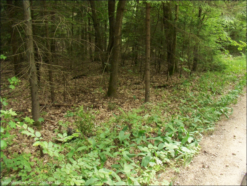 Siedlisko: Znaleziony po raz drugi, tym razem na porośniętym niską roslinnością zieloną i młodymi siewkami grabu, szerokim poboczu drogi leśnej.