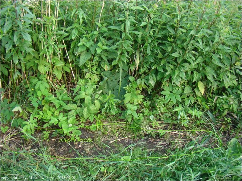 Lokalizacja: Pobocze drogi nad brzegiem śródleśnego jeziora Komosa, porośnięte trzcinami i topinamburem. Zbuchtowane nieco przez dziki szukające tu ich bulw.