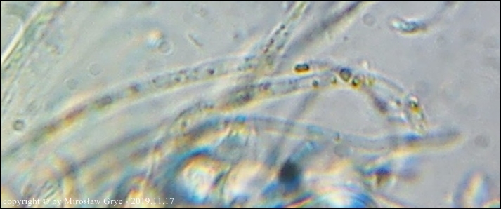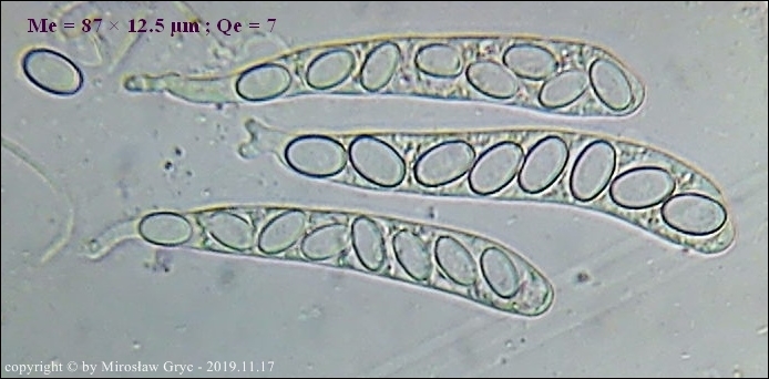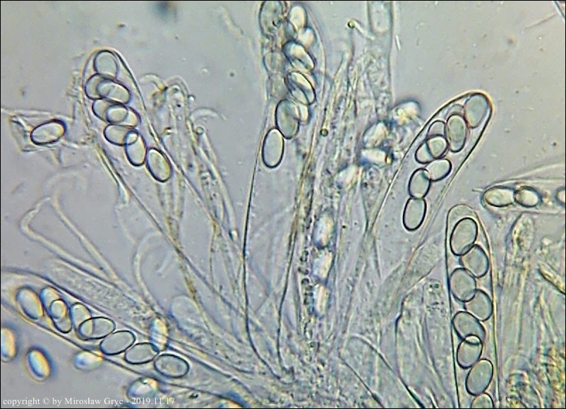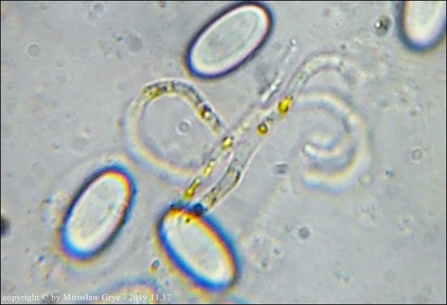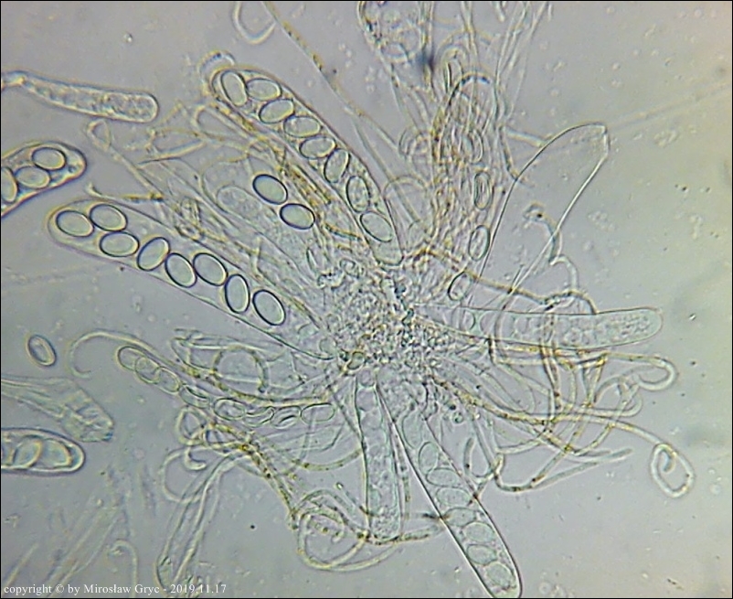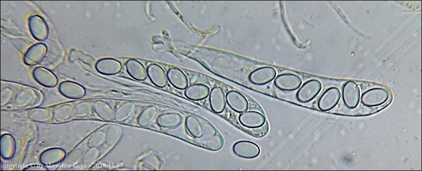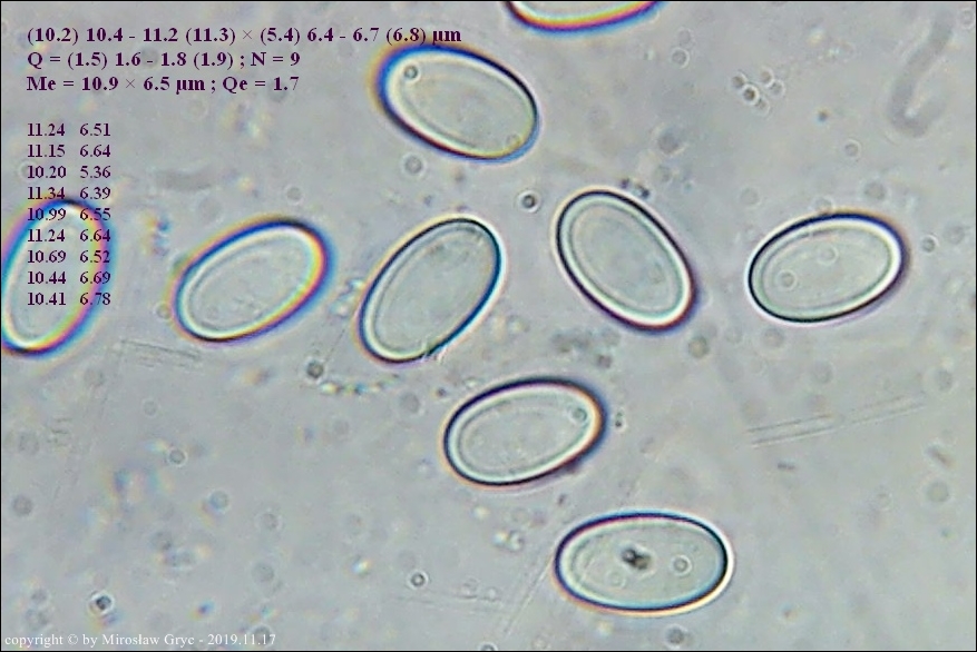 Większość autorów prac o tym rodzaju podaje dla tego gatunku zarodniki o nieco mniejszych wymiarach. Są to jednak bardzo małe rozbieżności oscylujące w granicach błędów pomiaru. Z drugiej strony jednak zastanawiajacy jest fakt, że większość autorów podaje jako cechę charakterystyczną obecność BB (Bary Bubble) w zarodnikach. Podejrzewam wobec tego, że badane w większości były eksykaty a nie owocniki żywe. W takim przypadku można śmiało uznać, że wymiary zarodników odbiegają nieco w dół od rzeczywistych.Moja kolekcja pod tym względem jest natomiast zgodna z typem norweskim, opisanym przez Olav Aas w pracy The genus Coprotus (Pezizales) in Norway. - Nord. J. Bot. 3:253-259. Copenhagen. w 1983 roku.
